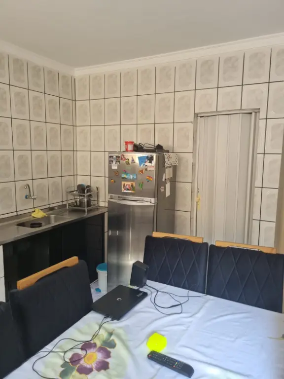 Terreno de 230 m².Terreno regularizado com toda documentação em ordem.Sendo, 01 casa com: dois quartos, 01 sala, 01 cozinha com dois banheiros, lavanderia e na parte superior uma área de lazer para churrasqueira e festas, com banheiro privativo.E mais uma 01 casa com 01 quarto, 01 sala, 01 cozinha e 01 banheiro. e mais uma casa, 01 sala, 01 cozinha e um banheiro.Aceito financiamento.
