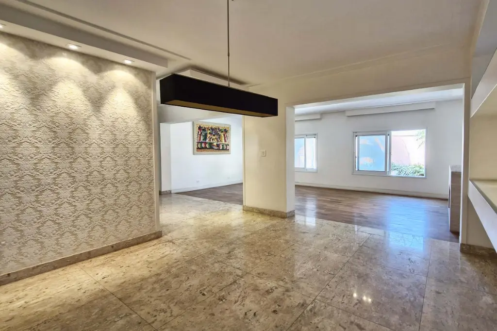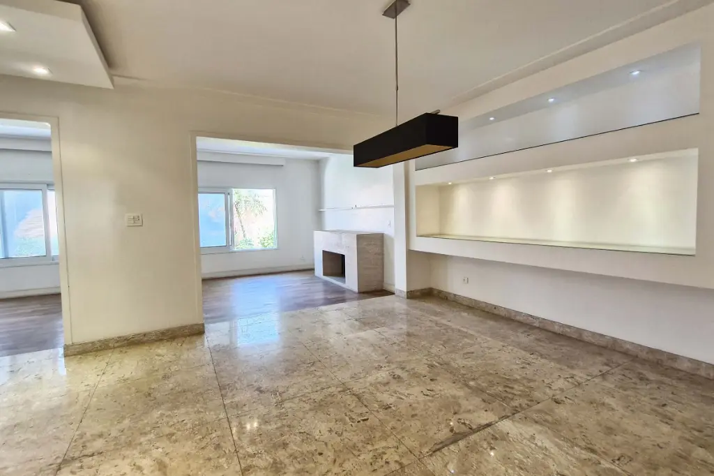 A área social reúne sala de estar com lareira, sala de jantar, copa e lavabo em ambientes integrados, todos muito iluminados e com excelente circulação. Conte também com uma sala, mais reservada, com vista encantadora do jardim, piscina e área gourmet .