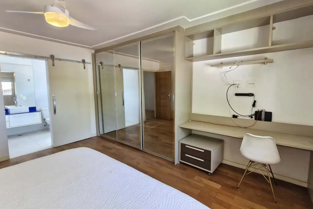 São 6 suítes amplas, todas com armários novos sob medida e a master com excelente closet e ar-condicionado. Todos os ambientes da casa contam com persianas automatizadas oferecendo mais comodidade no dia a dia.