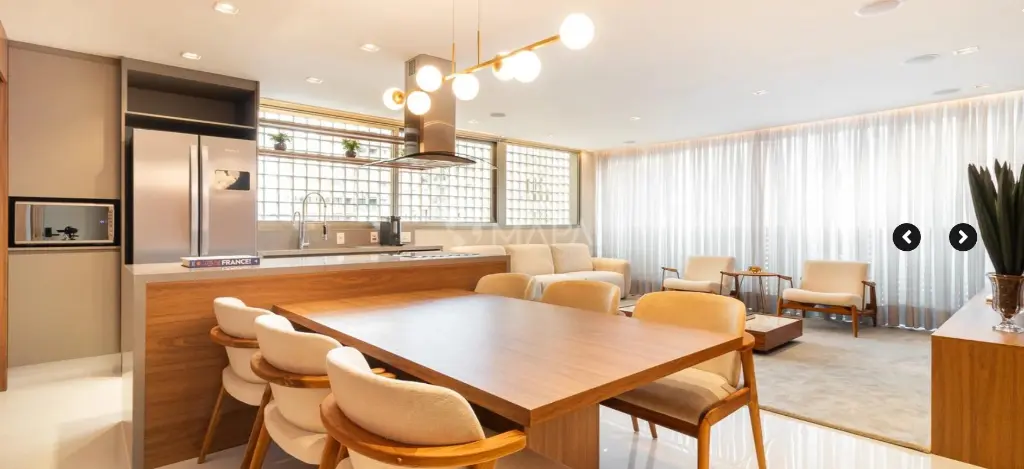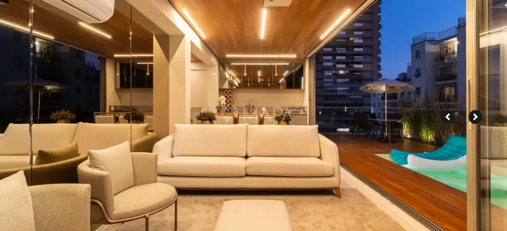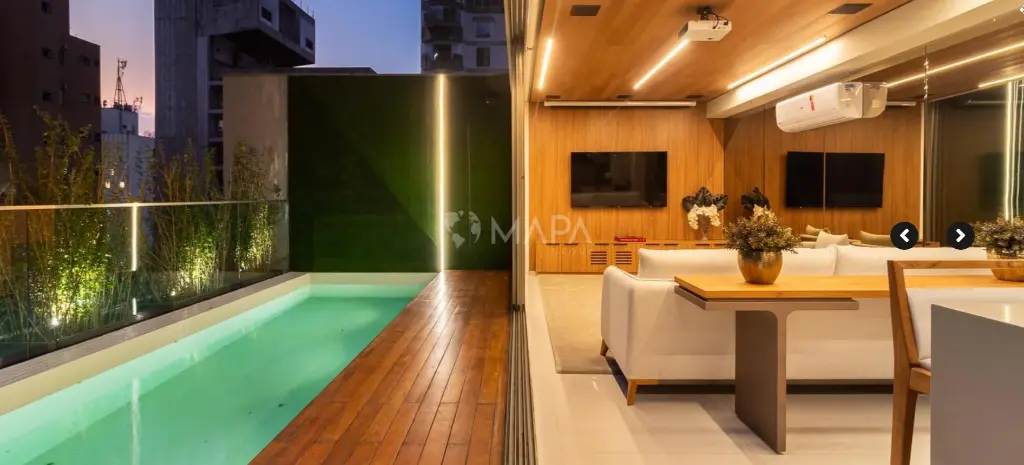 Design inspirado nas produções do renomado Arthur Casas, com foco principal em elementos de madeira e iluminação intimista, proporcionando conforto e sofisticação.