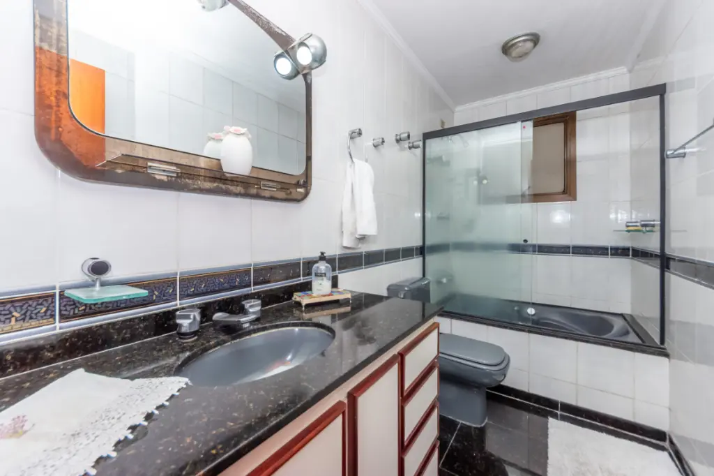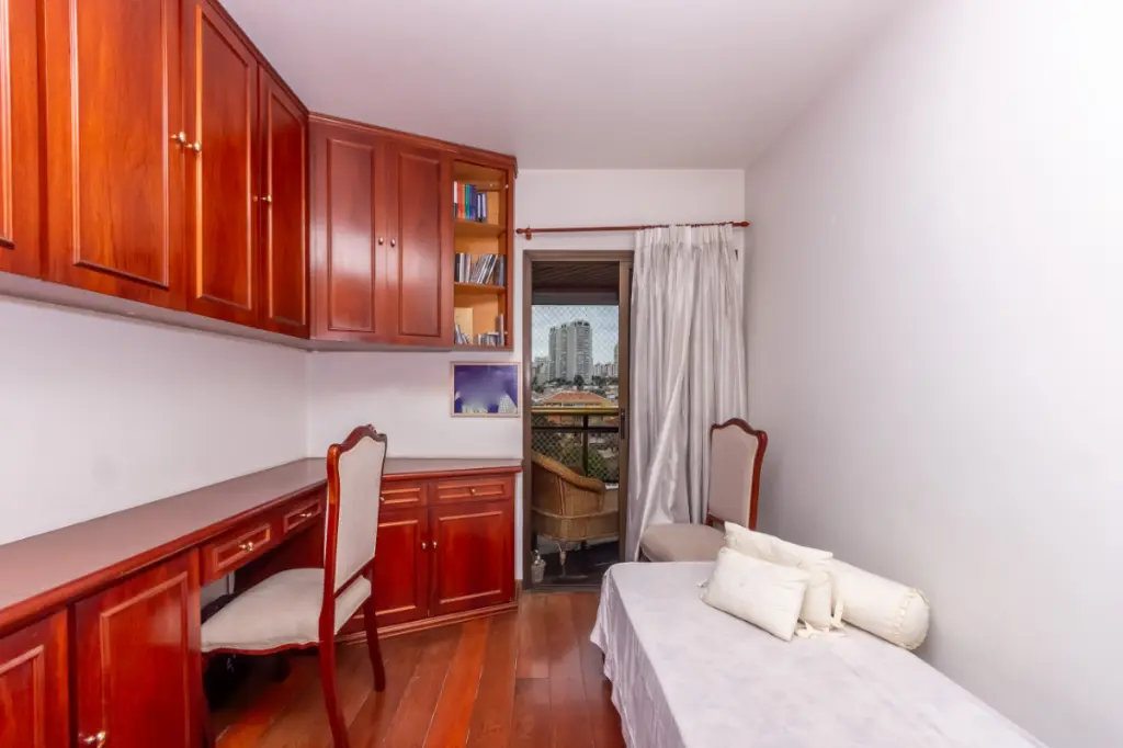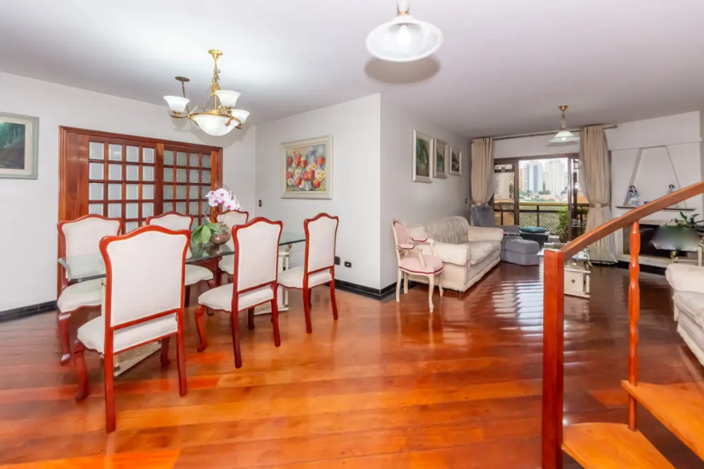 Belíssima Cobertura, na Vila Mariana, conta com quatro dormitórios (4 quartos), sendo 2 suítes, todos eles com armários embutidos, seis banheiros ao todo (incluindo o de serviço) -, ampla sala para dois ambientes, sala de estar (living) e sala de jantar, cozinha repleta de armários, dependência de serviço completa (quarto e banheiro), despensa, lavanderia (área de serviço) e 3 vagas de garagem para carro. Além de, no piso superior, contar com sala, cozinha, banheiro, área gourmet - com churrasqueira e forno de pizza - e piscina privativa.