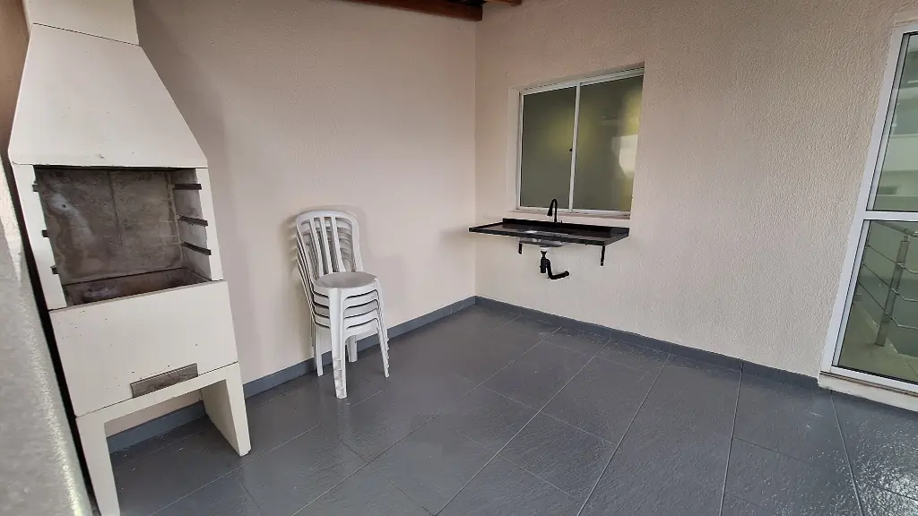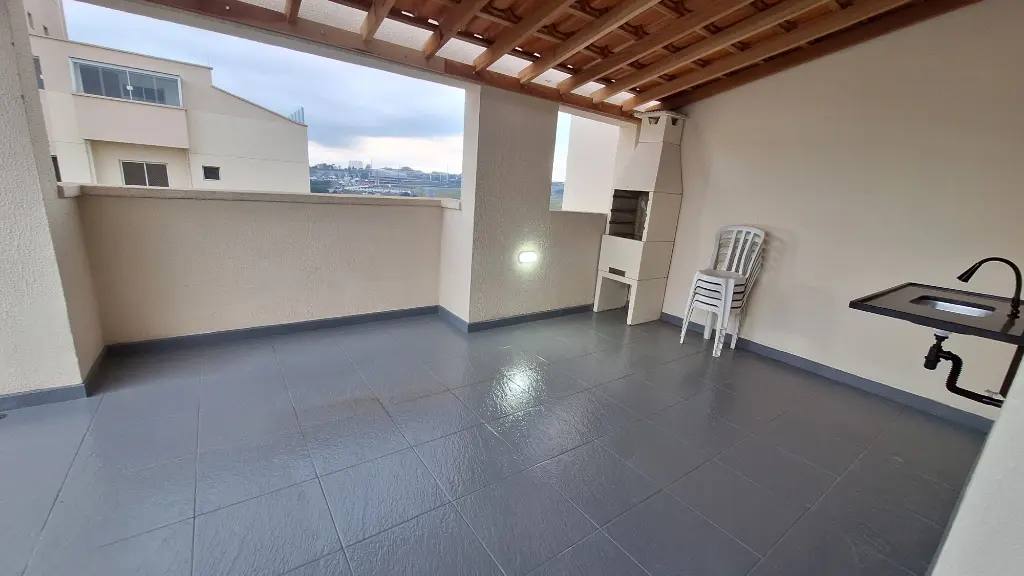 Esta cobertura conta com 2 dormitórios amplos, sala 2 ambientes espaçosa, 2 banheiros, cozinha, área de serviço e espaço gourmet com churrasqueira no piso superior.