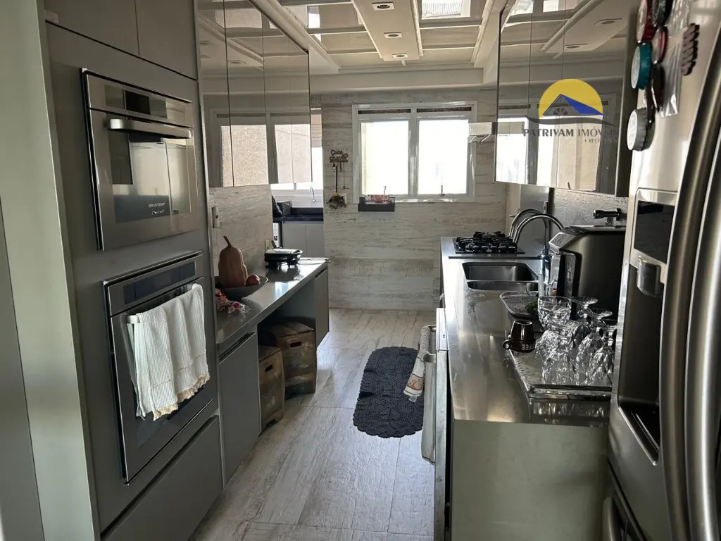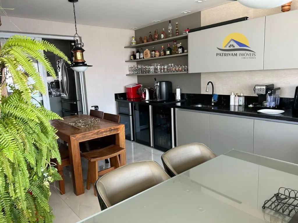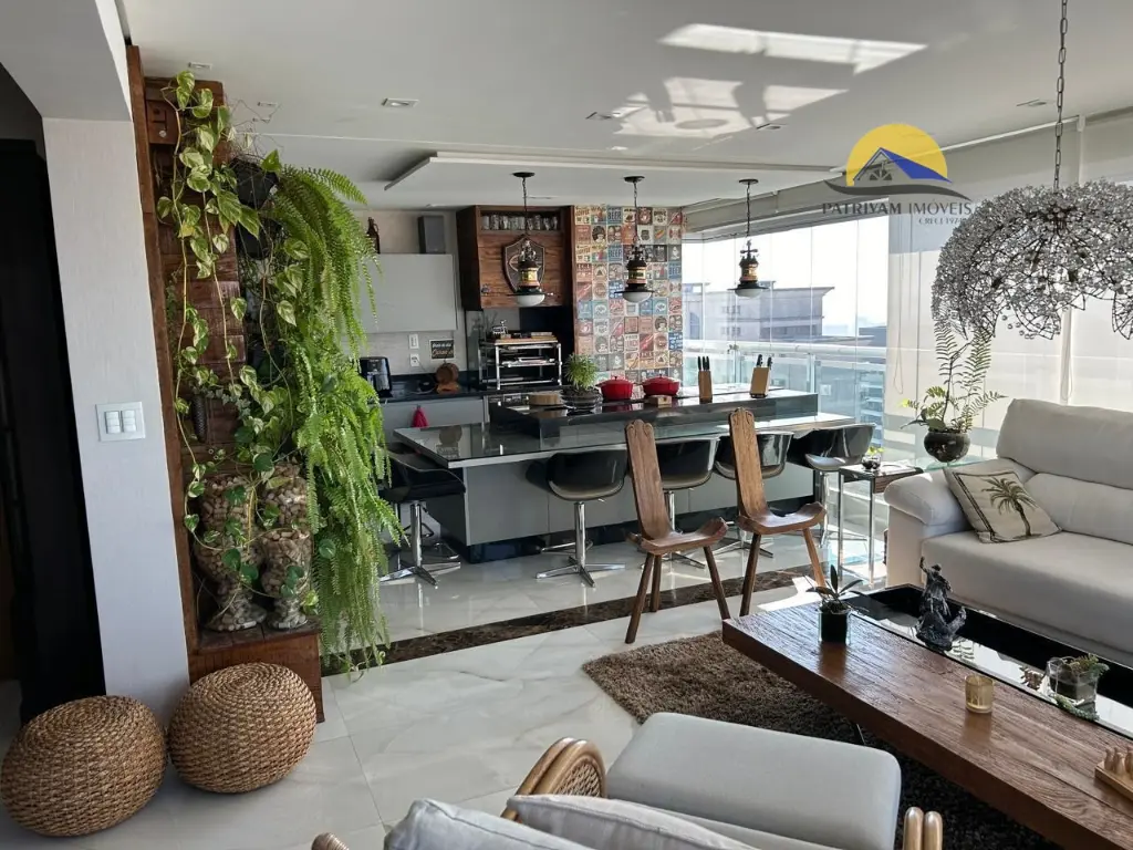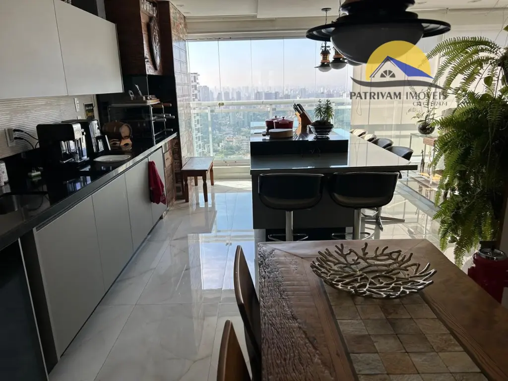 Área Social & Lazer: Sala ampla integrada a uma cozinha com móveis planejados da renomada linha Kitchens. Área gourmet completa com churrasqueira, ilha com cooktop, adega climatizada e piscina privativa com vista panorâmica deslumbrante da cidade.
