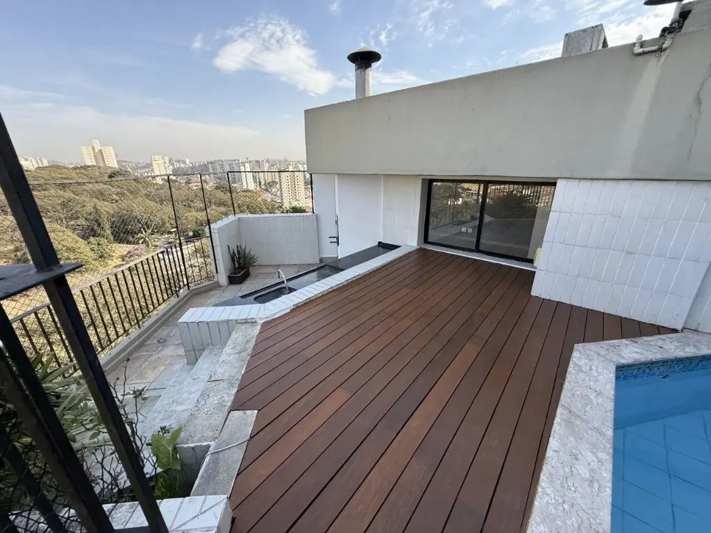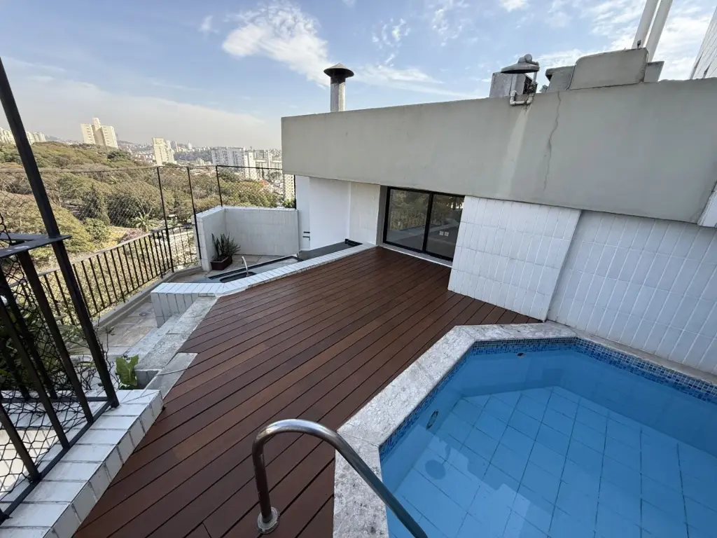 Charmosa cobertura duplex no Morumbi, com 2 suítes, área gourmet com churrasqueira, piscina privativa e vista espetacular, num dos melhores condomínio da região com ótimo custo. Imagine viver todos os dias cercado por uma vista panorâmica deslumbrante, com direito a pores do sol de cinema e noites estreladas que transformam sua casa em um refúgio de tranquilidade e charme. Esta cobertura no coração do Morumbi oferece tudo isso e muito mais! Na área externa, um verdadeiro oásis particular: deck com piscina privativa, espaço gourmet com churrasqueira e um ambiente perfeito para receber amigos e família com estilo e conforto. No andar de cima: uma ampla suíte e grande sala com sacada fechada e área externa com piscina e andar de baixo: uma segunda suíte, 1 quarto e banheiro, sala de jantar com sacada, cozinha, área de serviço, banheiro de serviço e um quarto de serviço que pode ser usado como home office, quarto ou depósito. No total o apartamento tem :2 suítes + 2 quartos +4 banheiros + 2 amplas salas + área externa com piscina e churrasqueira vaga de garagem para 2 carros. O apartamento é bastante iluminado, com portas de vidro nas sacadas da sala e nos quartos de baixo. O condomínio tem área de lazer completa e é um dos melhores da região, reformado, com belos jardins, laguinho, grande piscina e piscina infantil, salões de festa, salão gourmet, área com churrasqueiras, sauna, quadra poliesportiva, parquinho e brinquedoteca para crianças e estacionamento para visitantes. A localização doimóvel é excelente e estratégica: próximo a renomadas escolas, supermercados, shoppings, comércio variado e estações de metrô, os melhores hospitais.