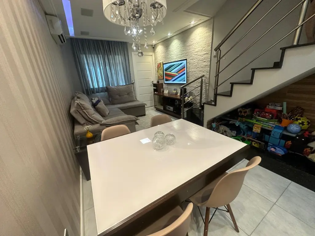 SOBRADO REFORMADO COM: 02 QUARTOS, SALA AMPLA, COZINHA AMPLA, 02 BANHEIROS, 01 LAVABO. ÁREA DE SERVIÇO/ CHURRASQUEIRA ETC.CONDOMÍNIO TRANQUILO, PRÓXIMO DE PADARIAS, MERCADOS, SHOPPINGS.MÓVEIS PLANEJADOS, FINO ACABAMENTO, QUINTAL, BANHEIROS REFORMADOS, AR CONDICIONADO. ACEITA FINANCIAMENTO.