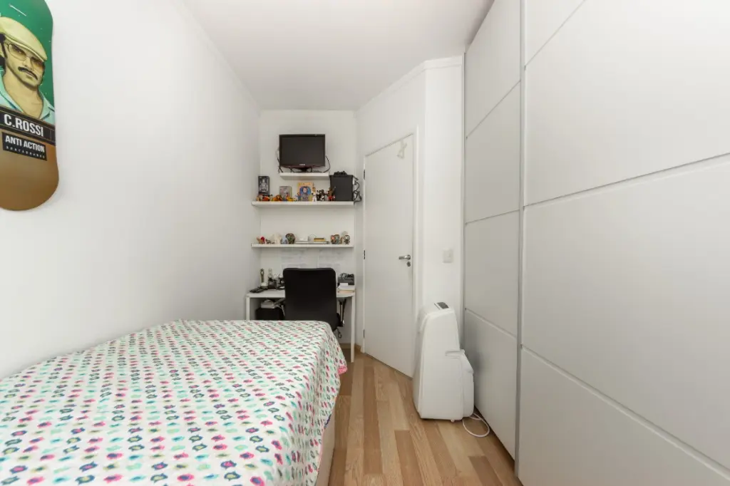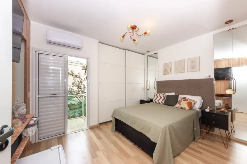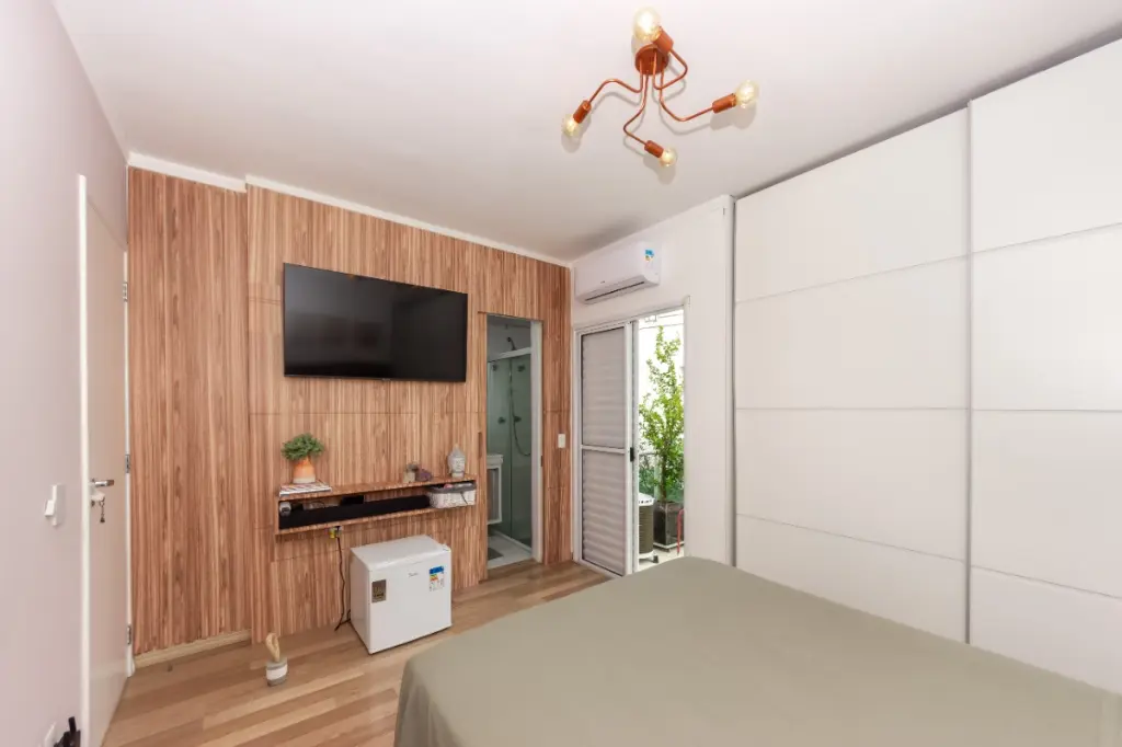 O imóvel apresenta três dormitórios sendo dois deles com móveis planejados, a suíte possui também ar-condicionado o que proporciona mais conforto, e três banheiros.