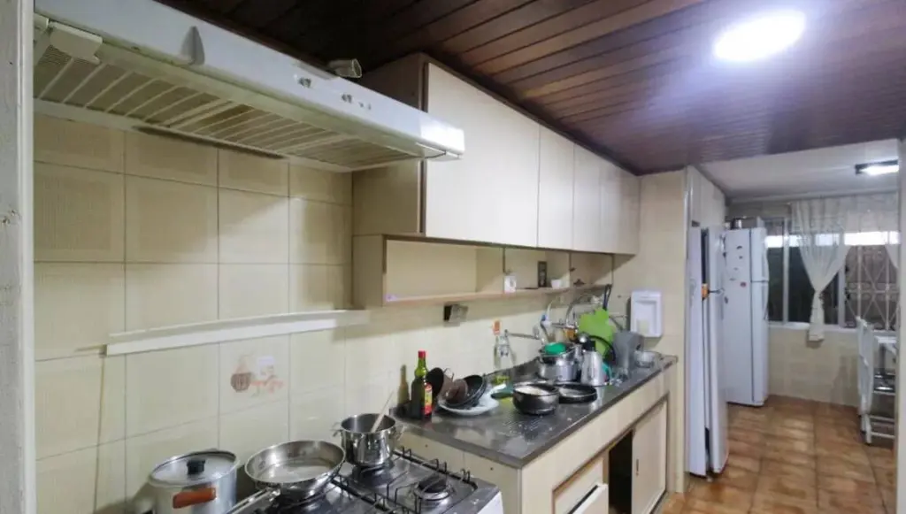 Tem cobertura com churrasqueira, quarto de empregada com banheiro .