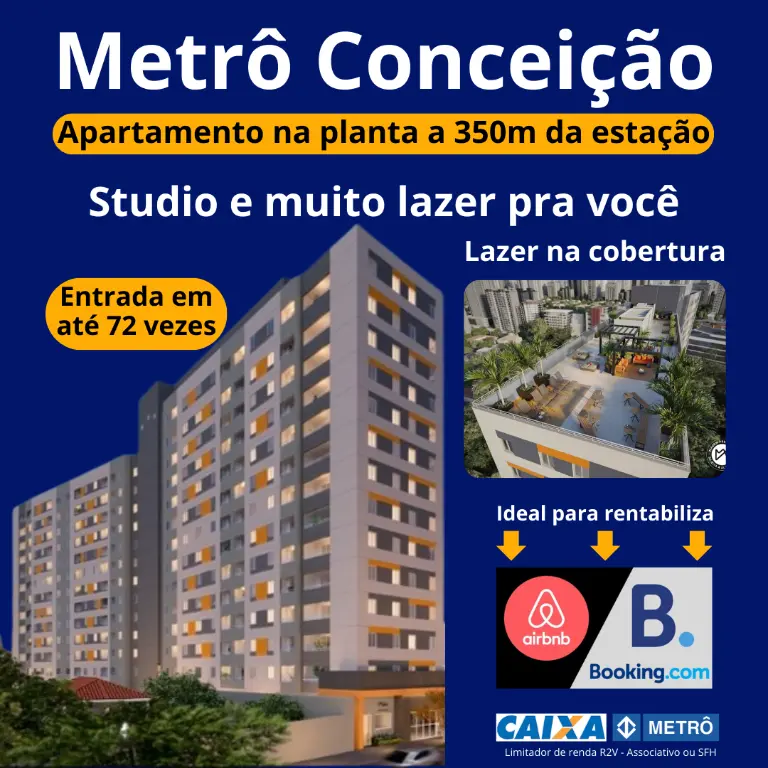 Apartamento tipo Studio, próximo a Estação Conceição do Metrô (linha azul), cerca de 350 m.