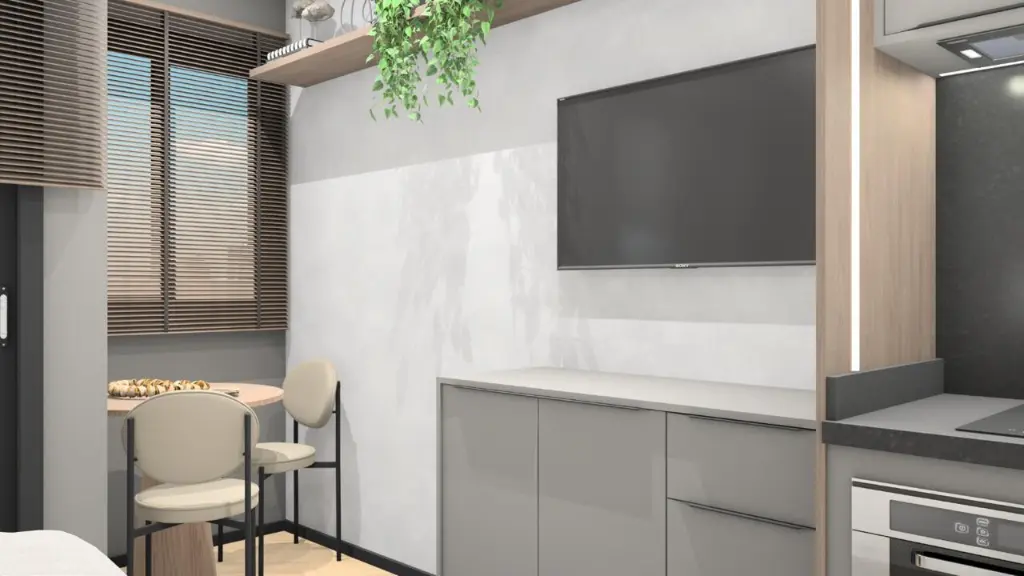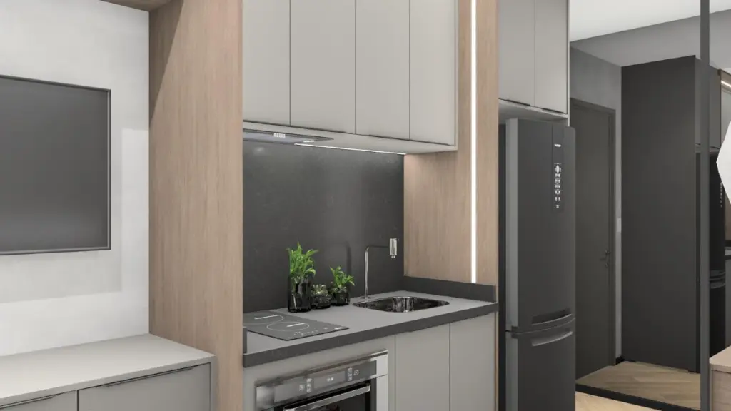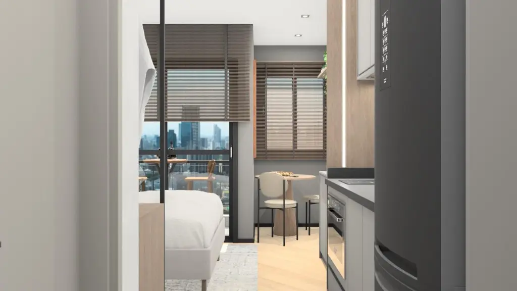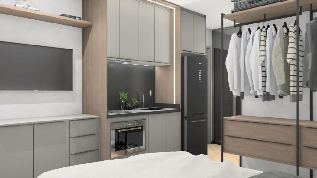 Os studios, com plantas otimizadas a partir de aproximadamente 23 m², têm projeto de arquitetura Marchi Arquitetura e interiores by Housi, com ambientes integrados, variação inteligente de layouts e alto padrão de acabamento. As unidades contam com porta de entrada com fechadura inteligente, infraestrutura para ar-condicionado tipo split, aquecimento central de água no chuveiro, tomadas USB duplas e previsão de carga e dreno para equipamentos, garantindo conforto, praticidade e valorização do imóvel.?