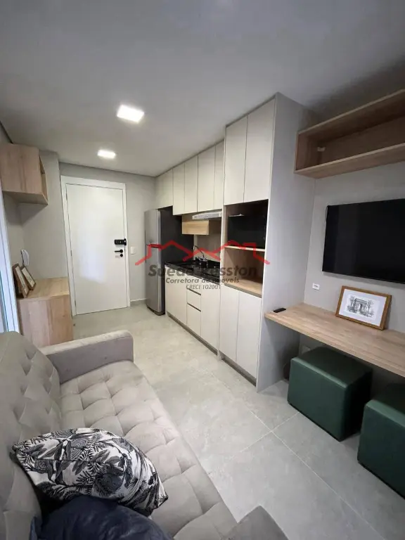 Apartamento para alugar totalmente mobiliado, pronto para morar, equipado com TV, micro-ondas, cooktop e ar-condicionado, oferecendo praticidade e conforto no dia a dia. O imóvel conta com 1 quarto e 1 banheiro, com um layout moderno e funcional que aproveita bem os espaços.