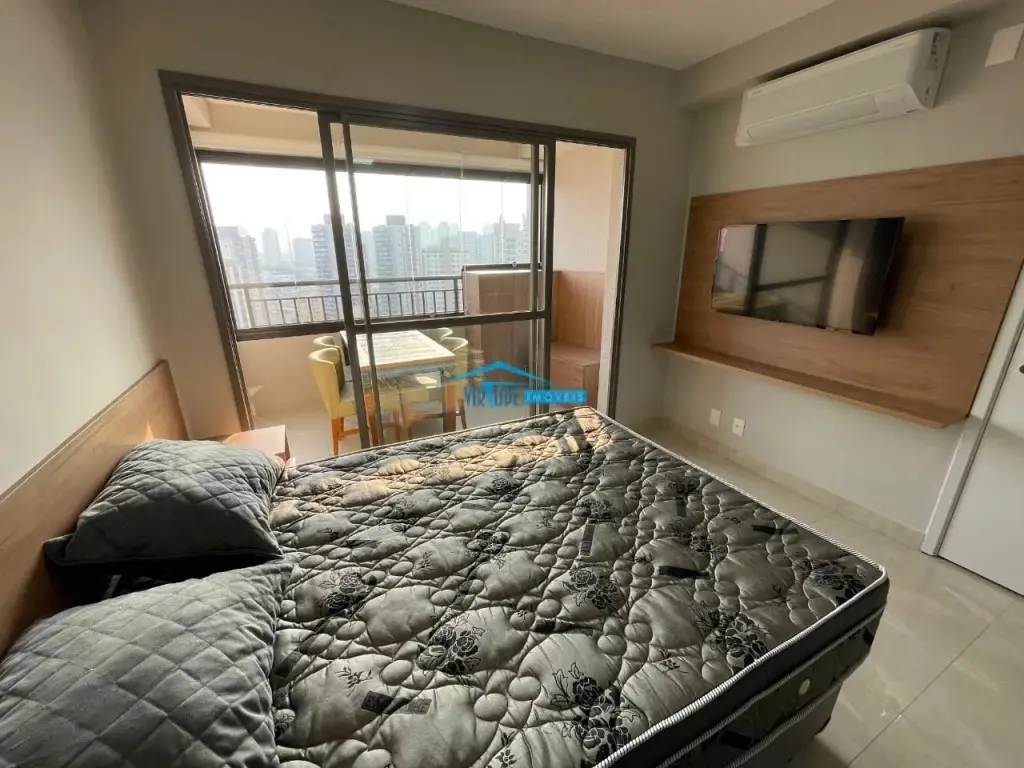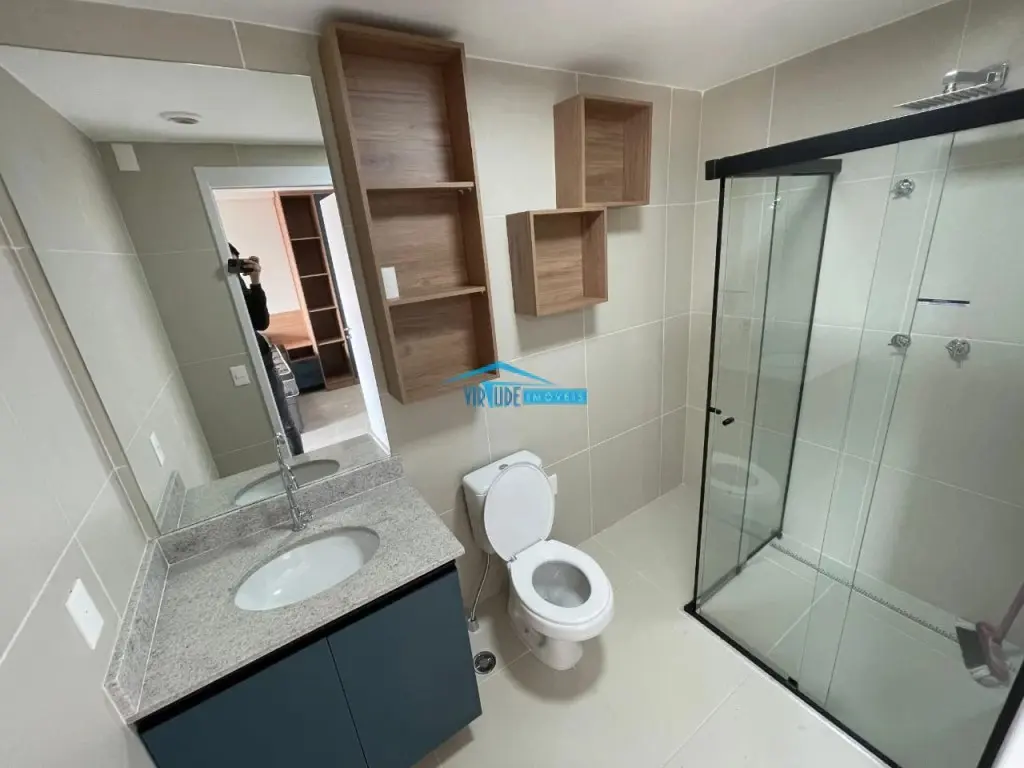 Excelente apartamento MOBILIADO com geladeira Brastemp, fogão elétrico, ar condicionado, TV Smart 32', microondas, cama box baú, mesa de madeira com 4 cadeiras em couro, armários embutidos, banheiro com box de vidro, chuveiro a gás..