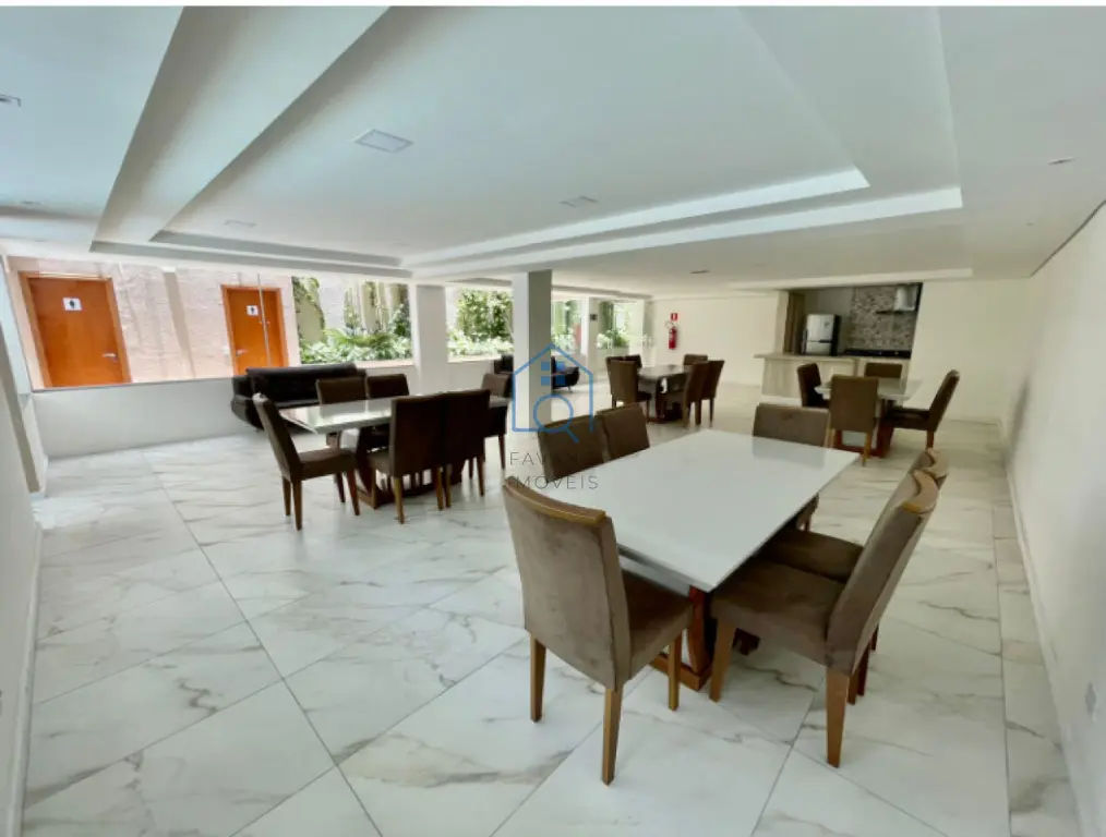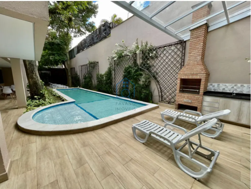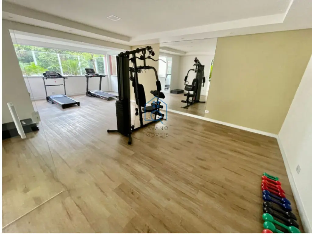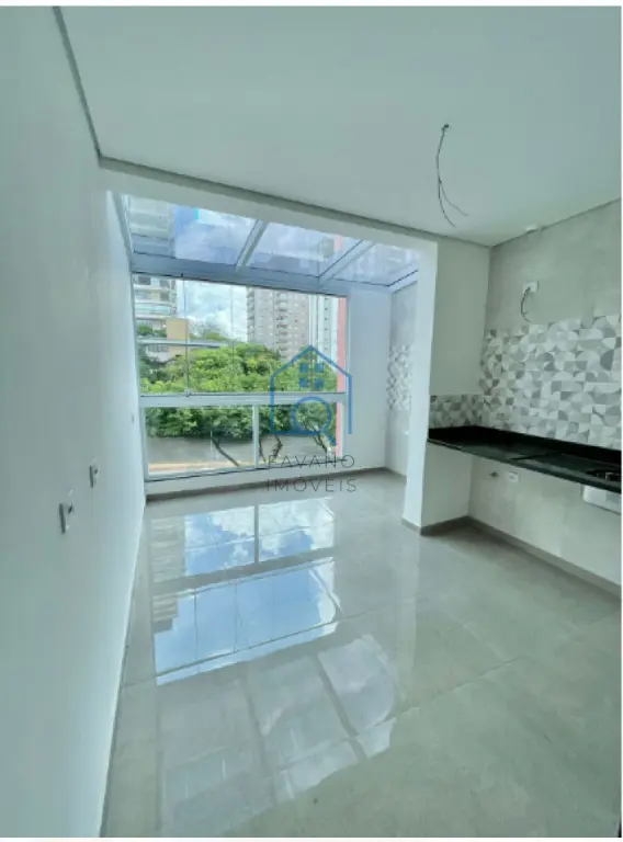 Possui 47,08m², terraço com cobertura envidraçada, guarda corpo com estrutura de alumínio branca. já vem com fechamento frontal da sacada envidraçada. Área da cozinha no terraço está isolada do Studio por porta balcão de alumínio com vidro semiacústico. Possui infraestrutura para receber 1 ponto de Ar-condicionado, sendo que banheiro já vem com box e chuveiro eletrônico instalados. Bancada de granito Verde Ubatuba na cozinha, com saída para exaustor da coifa do fogão. Está com piso vinílico. Com 2 vagas intercaladas e demarcadas e depósito no subsolo. Área de lazer com piscina, salão de festas, churrasqueira, academia e bicicletário.