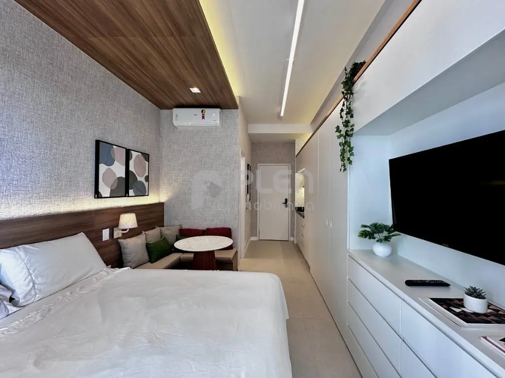 Este studio de 27,42m² é a definição de praticidade e inteligência. Ele vem totalmente mobiliado, pronto para você morar ou investir e desfrutar de um espaço otimizado e com design diferenciado.