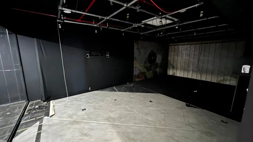 Sala para estúdio, com sistema de acústica e iluminação