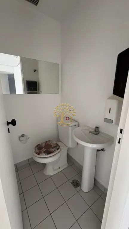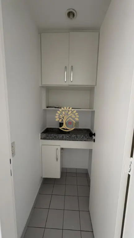 O conjunto dispõe de 2 banheiros com louças e metais em bom estado. Há também uma pequena copa equipada com bancada em granito, armário superior e inferior planejado, além de ponto de energia e instalação para filtro ou cafeteira.