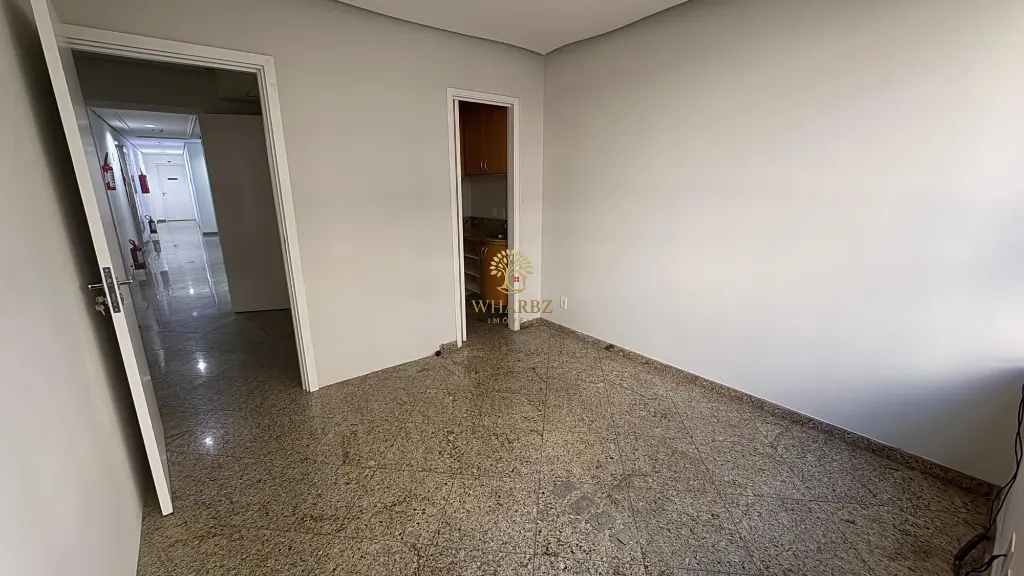 Outro ponto importante é a estrutura de apoio: a sala dispõe de lavabo privativo e copa, elementos que agregam autonomia e conforto à rotina profissional. Os ambientes recebem iluminação natural, têm janelas amplas e acabamento em piso de granito, compondo um conjunto de fácil manutenção e com imagem corporativa adequada para quem deseja receber clientes com mais profissionalismo.