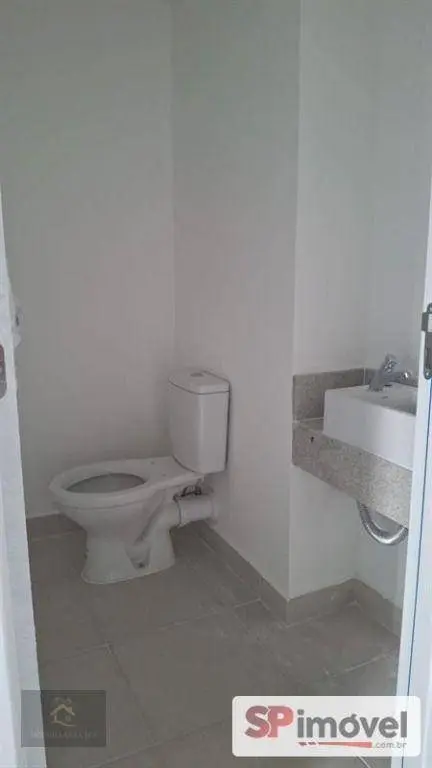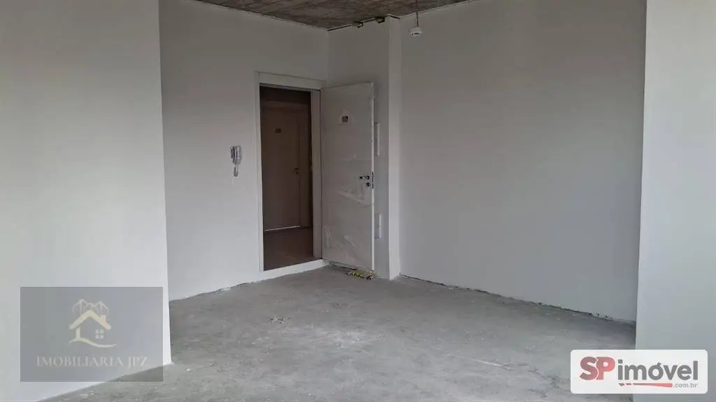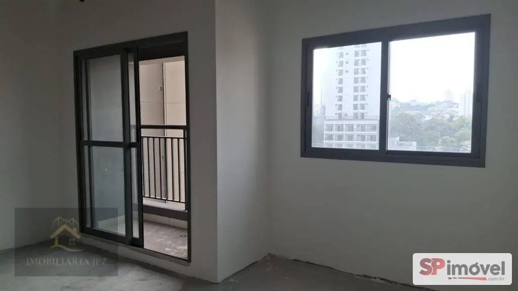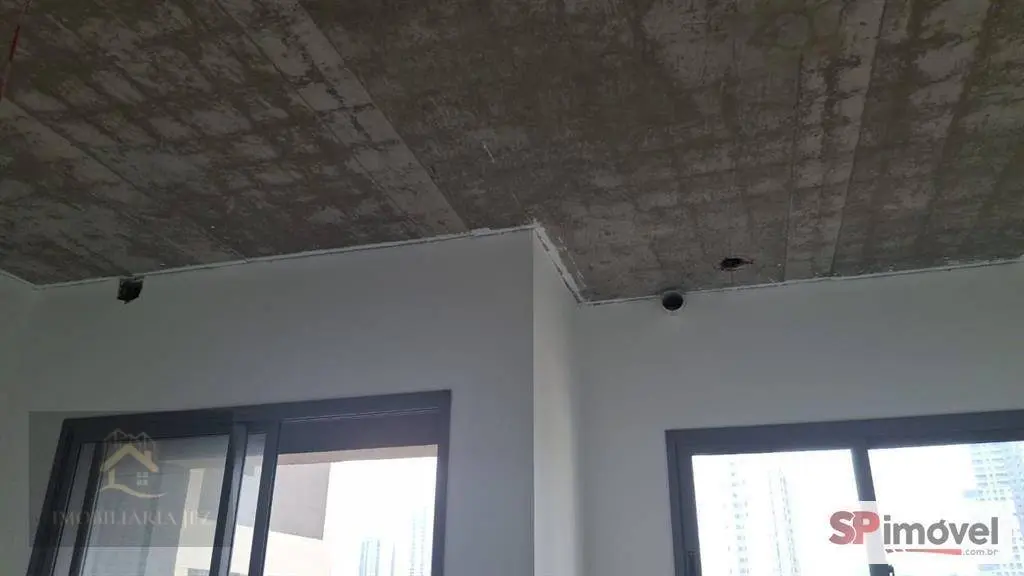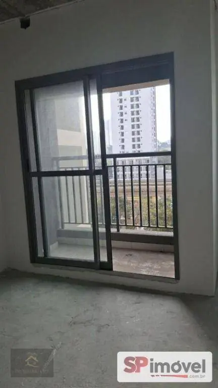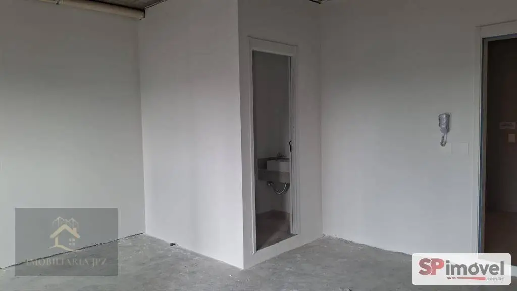 Sala comercial de 29m², com banheiro privativo, sacada pequena com porta, está sem piso e sem forro para que o inquilino possa adequar ao seu uso.