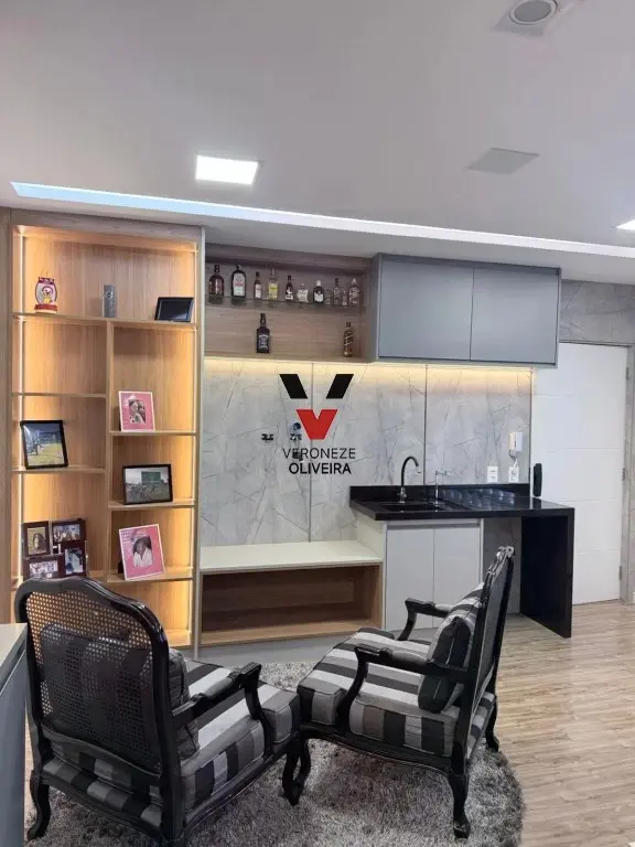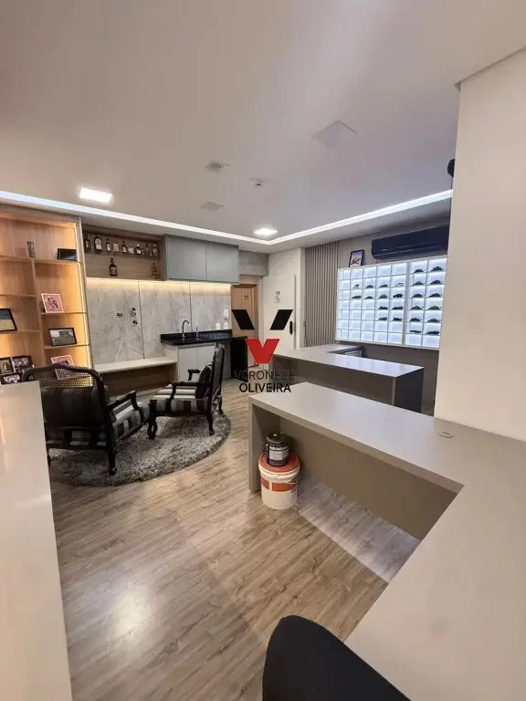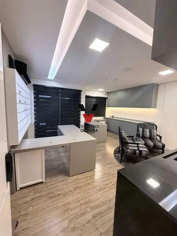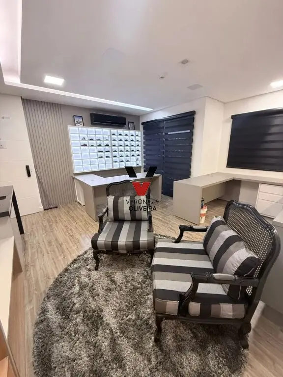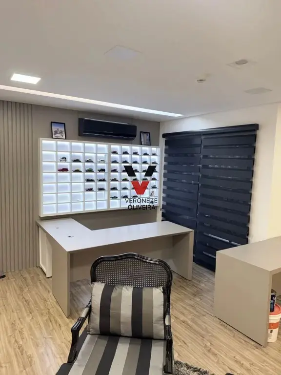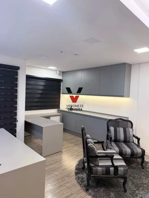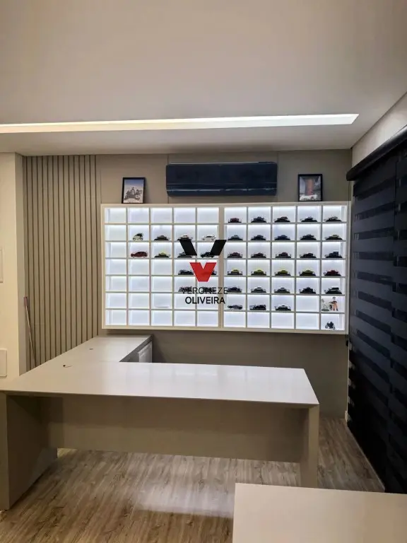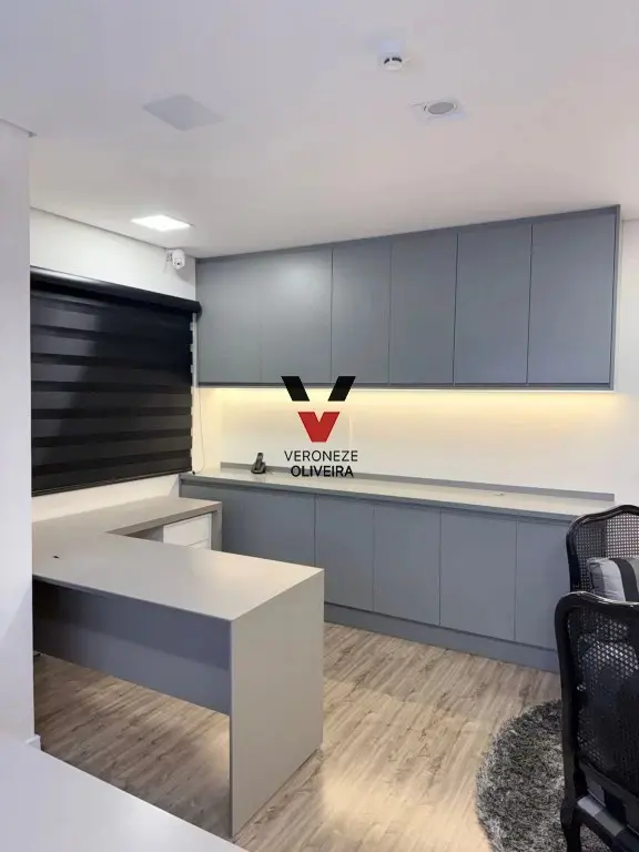 Sala com 29 mts2, toda planejada com mesa, armários, painel e ar condicionado.