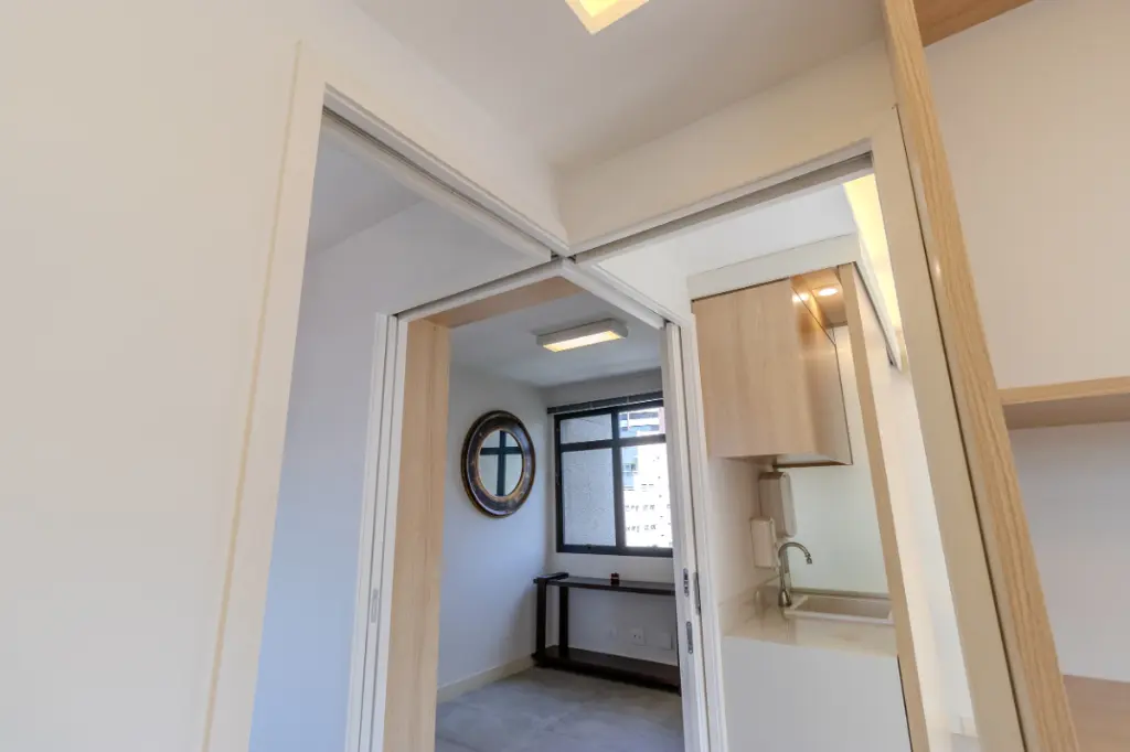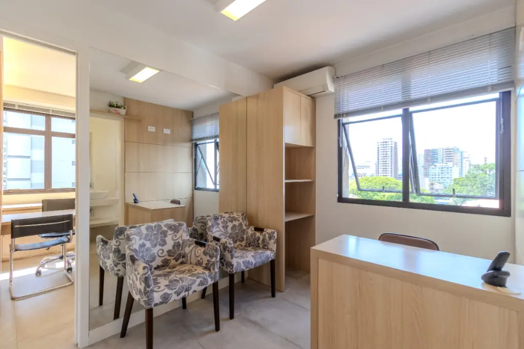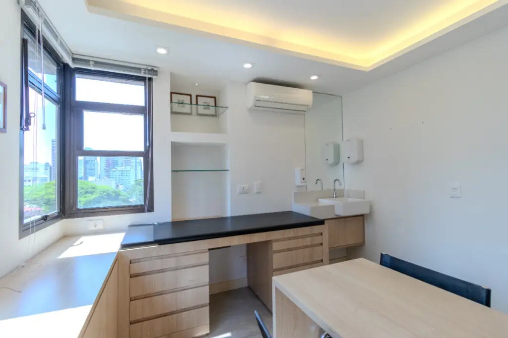 Todos os ambientes contam com ar-condicionado split, portas de correr, que possibilitam flexibilizar a divisão dos espaços de acordo com o tipo de atendimento, além de persianas em todas as janelas, garantindo privacidade e conforto.