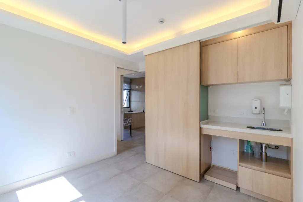 O espaço com 4 ambientes e 2 banheiros é dividido em recepção, sala de atendimento, sala de procedimentos e sala de apoio todos com infraestrutura hidráulica e elétrica completa, está adequada para tratamentos estéticos e atendimentos de saúde e bem estar ou outros.