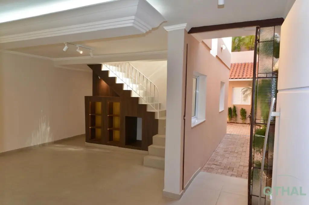 Portão automático, campainha com sistema de voz, espaço para estacionar 2 veículos compactos.