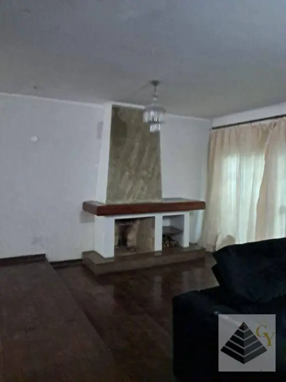Sala ampla com lareira, perfeita para momentos de conforto e convivência