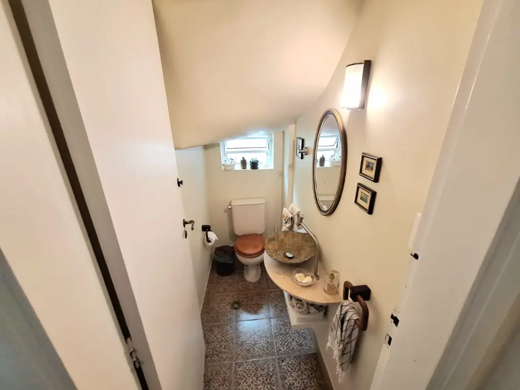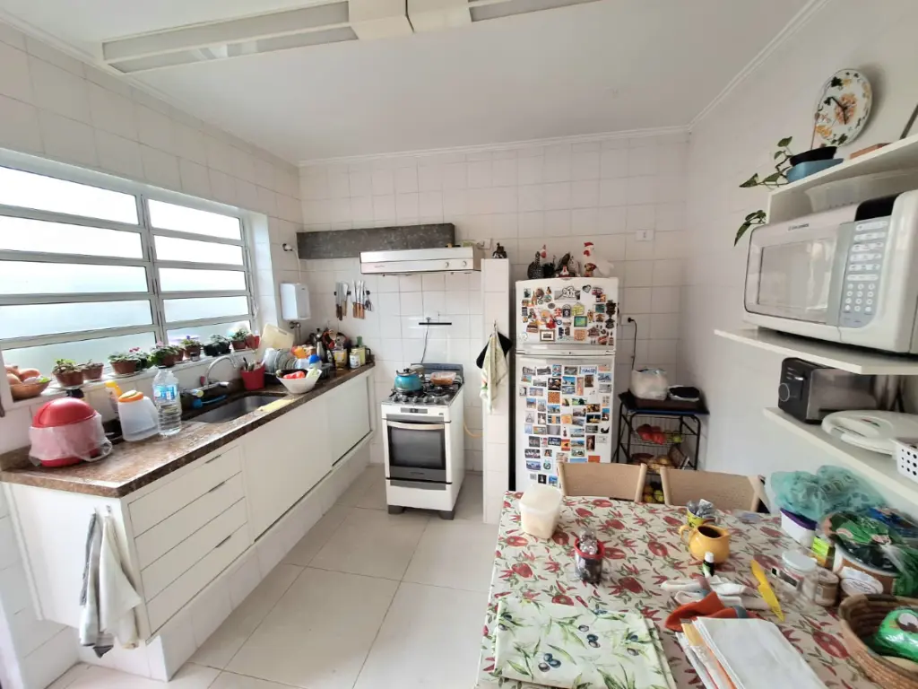 Ao chegar na casa entramos na garagem coberta para dois carros. A sala com janelão em serralheria mantem o charme originário da época da construção. A sala possuí dois ambientes com lavabo, potencial construtivo para integração ao corredor lateral. A sala de almoço é espaçosa e mantem as características do projeto original, também pode ser integrada a cozinha que é muito funcional e liga a área externa. Subindo as escadas chegamos nos três dormitórios espaçosos, arejados e iluminados, o corredor compartilha um banheiro social. A área de serviço é independente e fica nos fundos ao lado da Cozinha. A casa oferece mais duas suítes nos fundos independentes da casa principal uma com copa e a outra com generoso banheiro ideal para quarto de hospedes, escritório ou para locação pelo Booking e AirBnB ou locação tradicional de 30 meses.