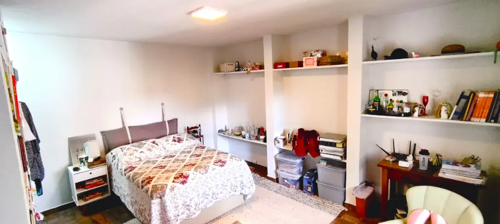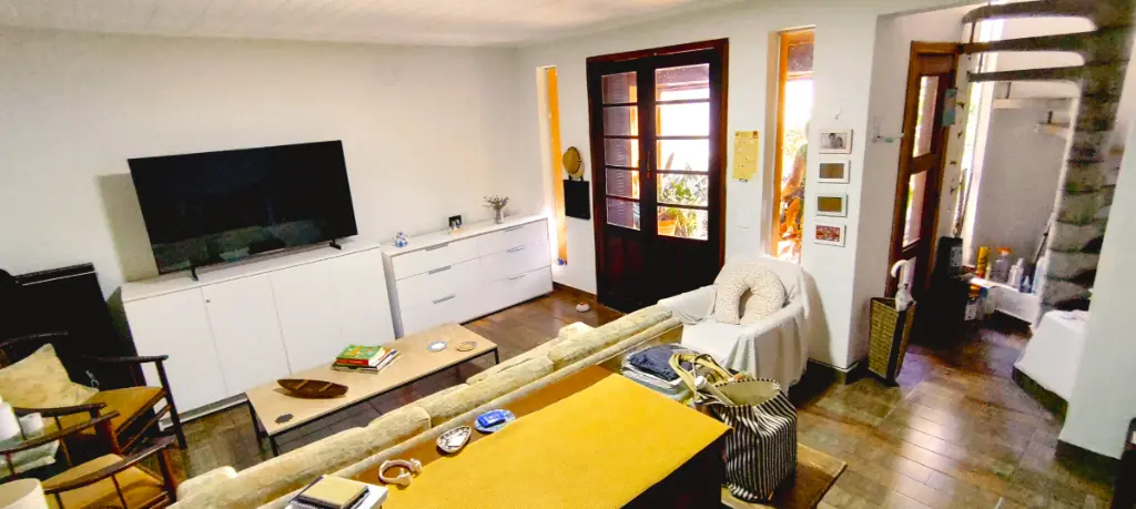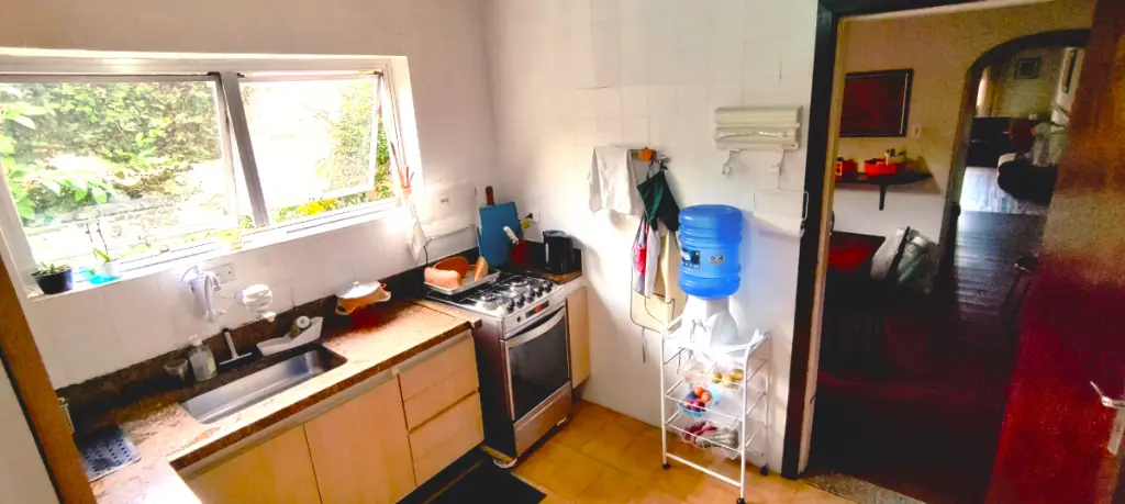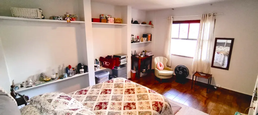 Sobrado Geminado com 250 metros quadrados de terreno com 3 amplos dormitórios com armários embutidos (1 suíte), com 2 banheiros na parte superior e 1 lavabo na parte inferior, possui também um quarto de serviço com banheiro exclusivo ideal para hóspedes com dificuldade de locomoção, cozinha com armários planejados piso frio, com edícula reformada ao fundo com amplo dormitório e 1 suíte. Quintal híbrido com 2 vagas de auto e extensa área verde.