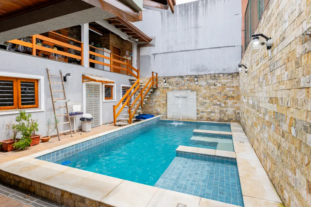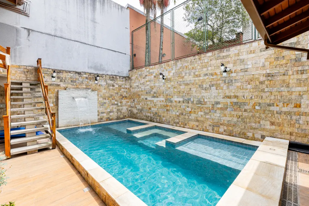 A área externa é, sem dúvida, o cartão de visitas da casa. O pátio conta com uma piscina equipada com trocador de calor (por placas solares) e uma cascata charmosa. Você e sua família poderão desfrutar de banhos relaxantes independentemente da estação. A área gourmet adjacente, equipada com churrasqueira, é o cenário perfeito para encontros familiares ou com amigos, tornando cada final de semana um momento especial.