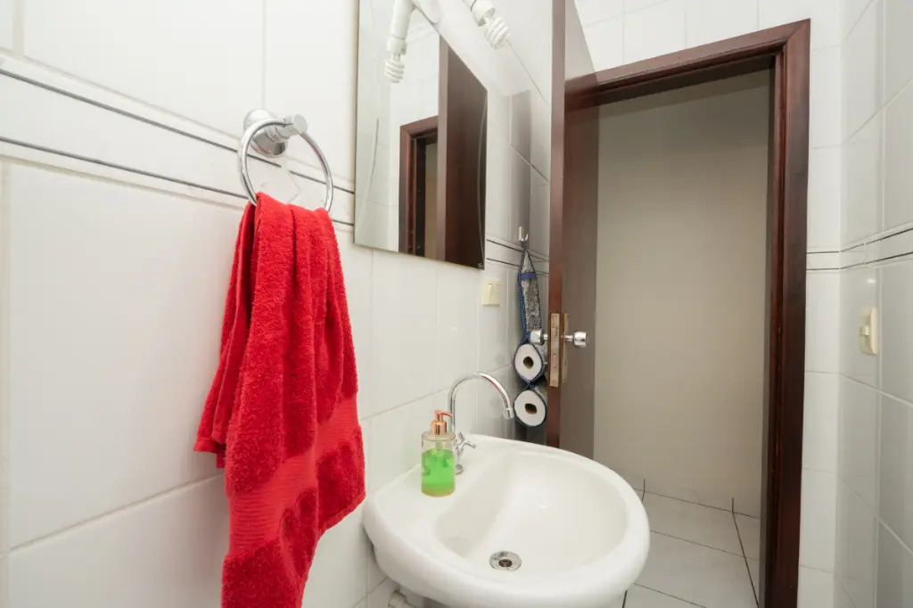 Lavabo e copa integrados, também com ótima entrada de luz natural.