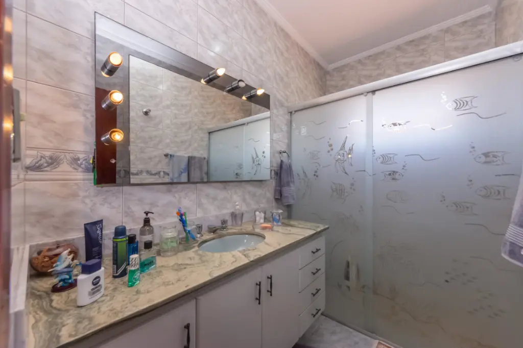 Com 160 m² de terreno e área construída, o sobrado dispõe de 9 cômodos espaçosos, incluindo 3 amplos quartos e 3 banheiros, além de 1 lavabo para maior conveniência. A cozinha grande, equipada com armários embutidos, é perfeita para quem gosta de cozinhar e receber amigos e familiares. A área de serviço distinta e a lavanderia completa oferecem comodidade e praticidade.