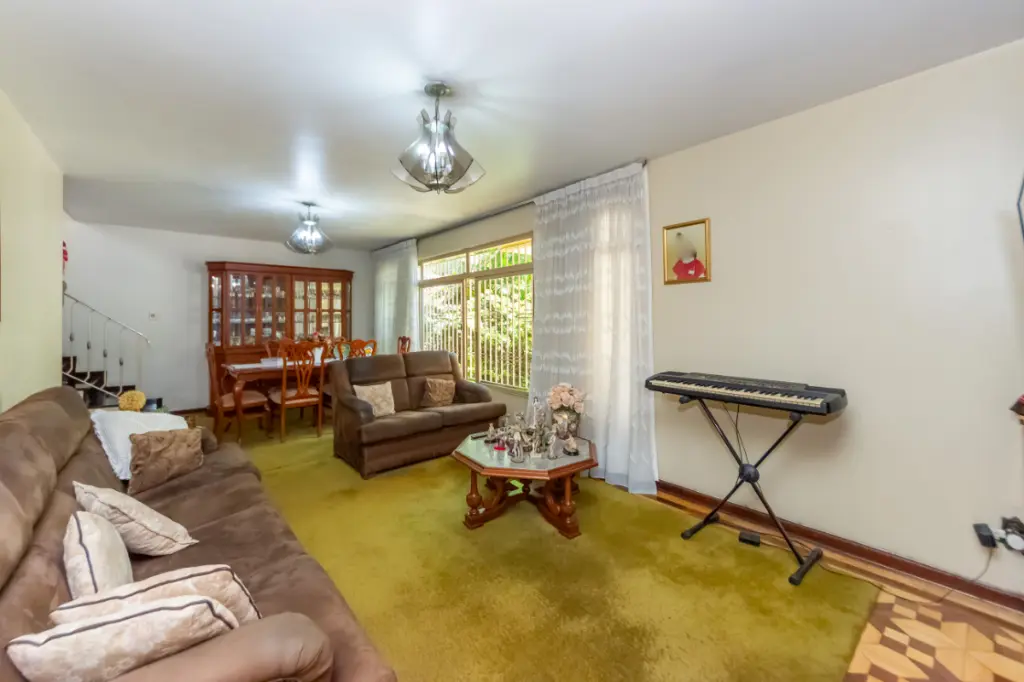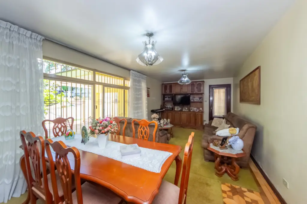 As janelas grandes permitem que a luz e ventilação natural inunde todos os ambientes. Para reuniões familiares, a sala de jantar é um espaço acolhedor.