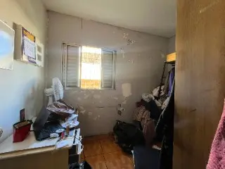 3 quartos e 1 banheiro sendo um dos quartos com armário imbutidos e uma escada com corrimão para subir para parte superior