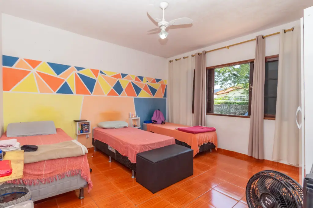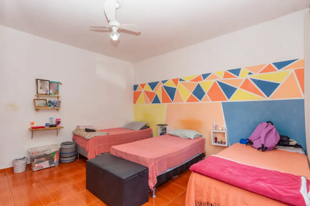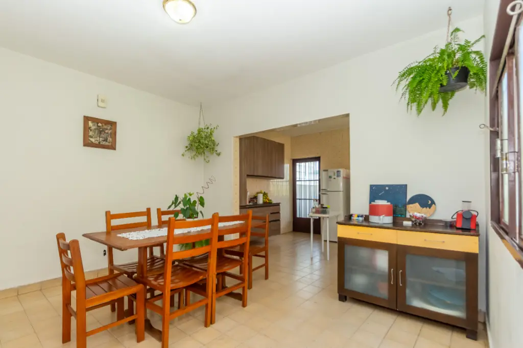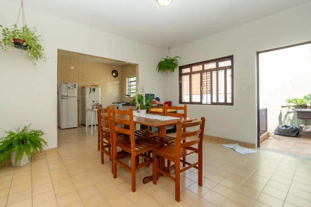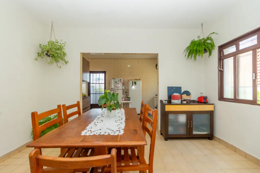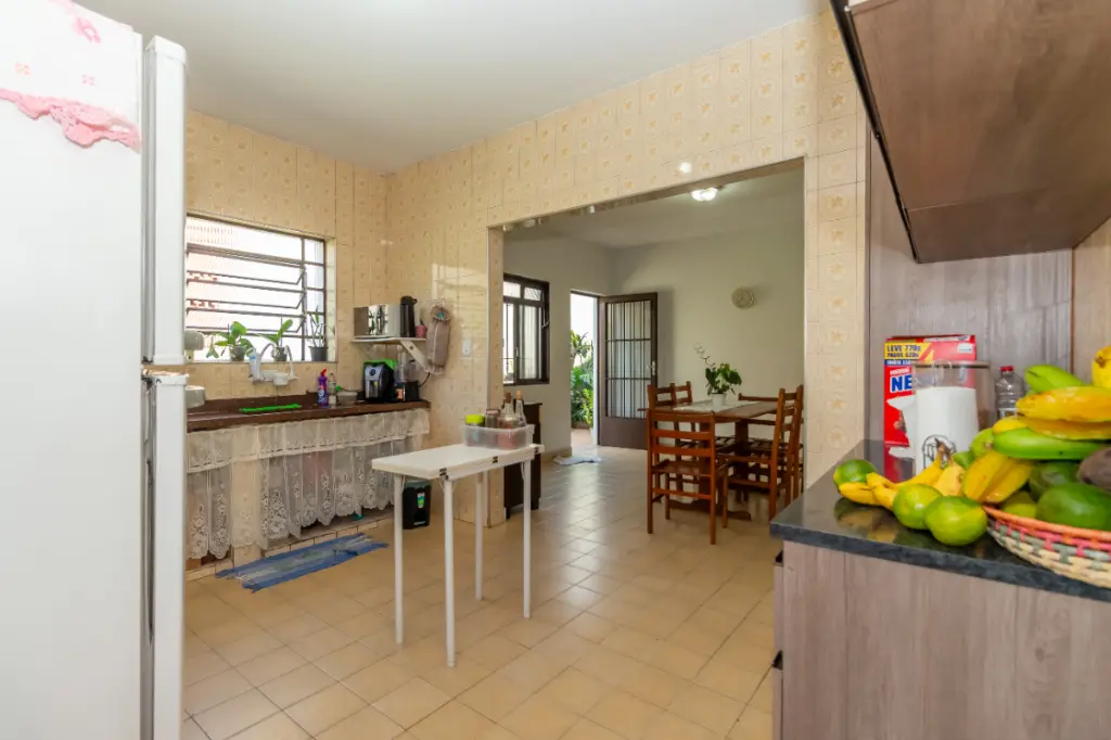 Ao entrar, você será acolhido por um amplo hall de entrada, seguido por uma cozinha grande e bem equipada, com armários embutidos. A propriedade conta com três quartos aconchegantes e três banheiros, ideal para acomodar toda a sua família. A área de serviço é completa, incluindo lavanderia, dependência de empregada e depósito externo (edícula).