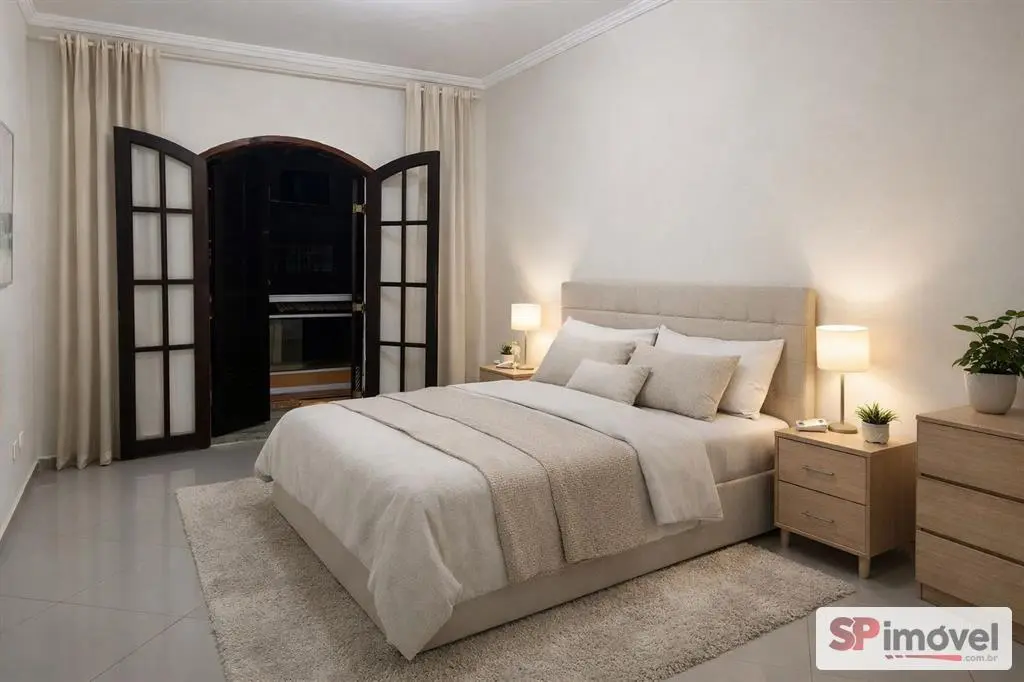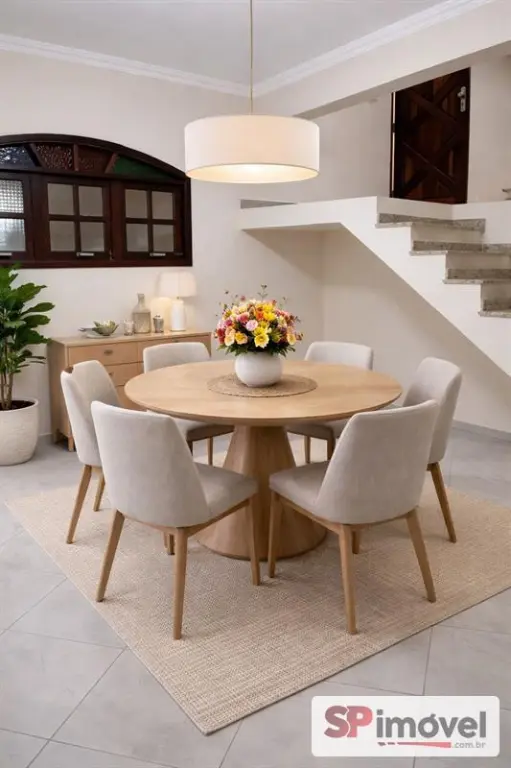 Sobrado amplo com 3 suítes com sacada, sala para 2 ambientes, lavabo, sala de jantar, cozinha, quintal nos fundos com lavanderia e cobertura retrátil, corredor lateral, garagem para 2 carros com portão automático.