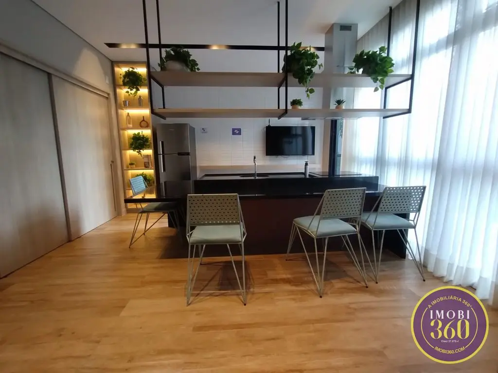 Possuí janela blackout, armários na cozinha e lavanderia, pia em granito preto, cooktop por indução, suggar/depurador de ar, armários planejados na suíte, sala com varanda, banheiro com box de vidro, gabinete e espelho. Ambientes integrados (quarto, sala, cozinha).