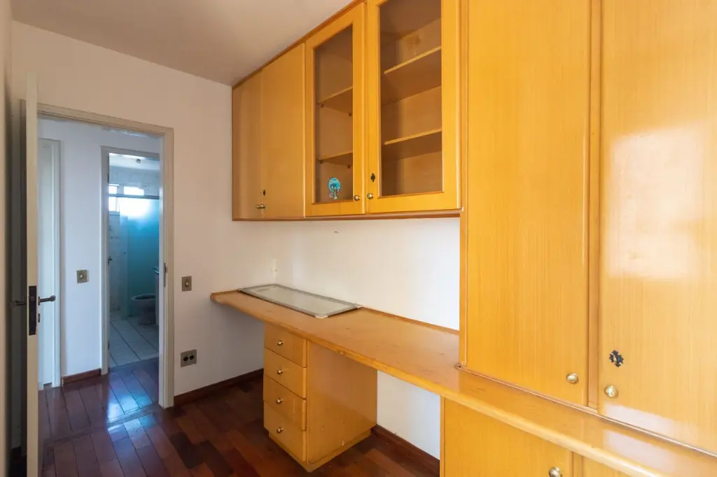 Apartamento com 1 vaga de garagem, 77m2 distribuídos em 3 dormitórios com armários, sendo um com sacada, cozinha com armários e gabinete, sala, banheiro social, área de serviço e wc de serviço.