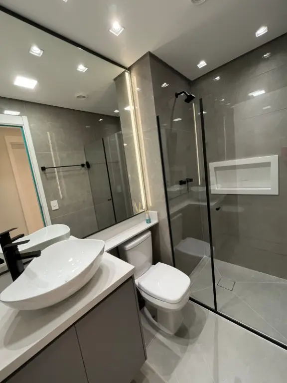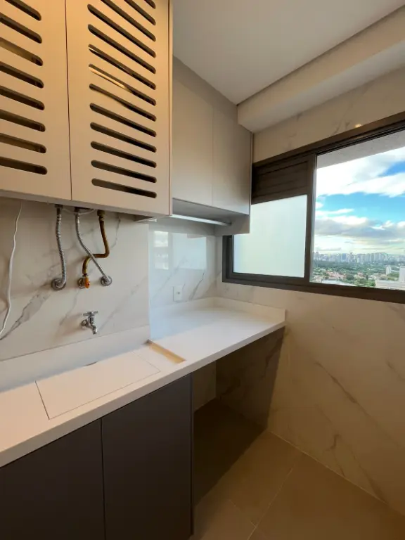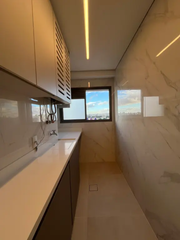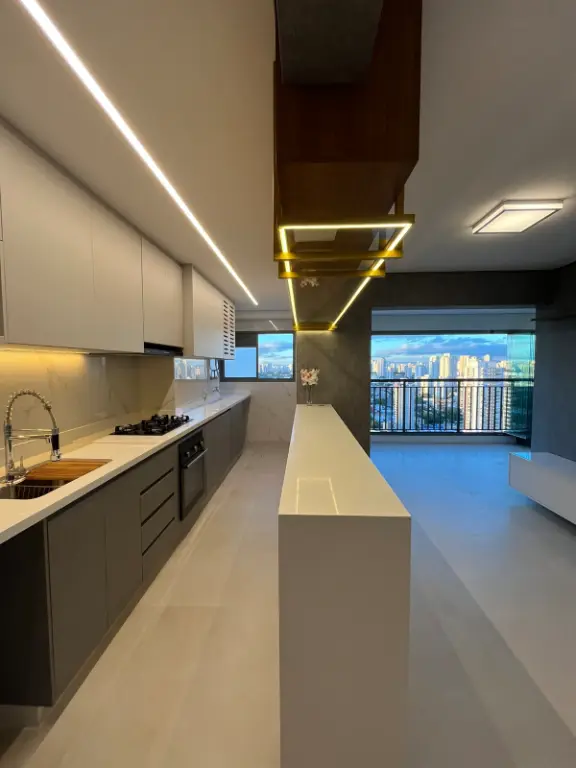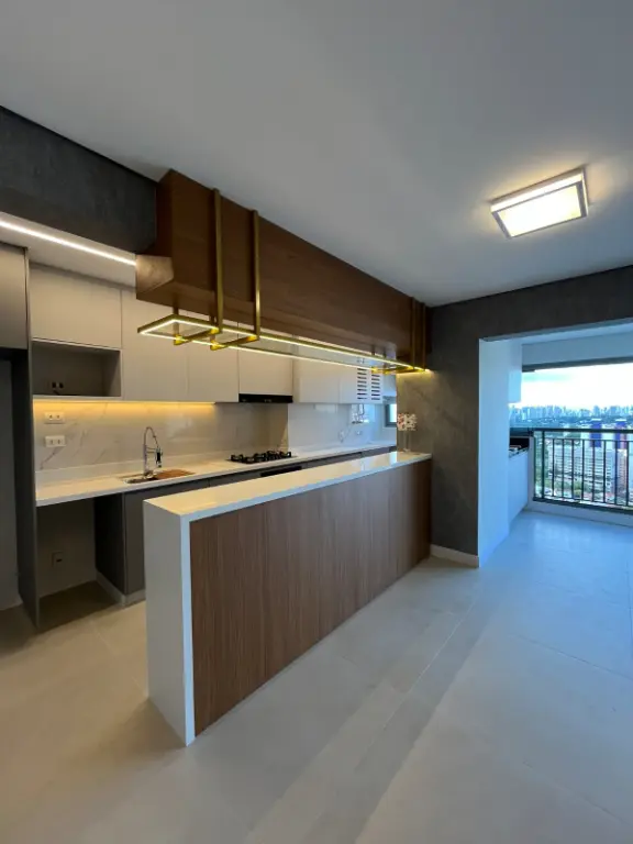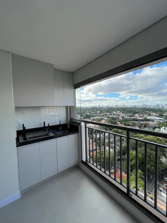 Apartamento de 75m² com 2 dormitórios e 1 suíte, a planta esta com cozinha aberta e varanda integrada com a sala. Nada está como a construtora entregou, foram trocadas todas as pedras e revestimentos. Acabamentos de luxo, ar condicionado na sala e quartos, vista livre maravilhosa, tanto para o Jardim Prudência (região arborizada) quanto Vila Mascote (mais verticalizada). Apartamento face norte, sol da manhã. Bate sol o dia inteiro no apartamento, inclusive nos 2 dormitórios. Varanda com churrasqueira à carvão.