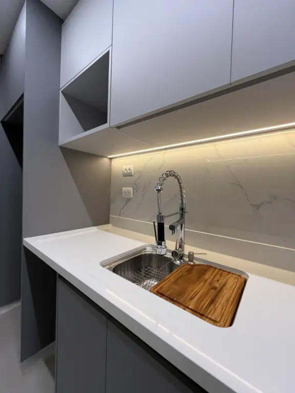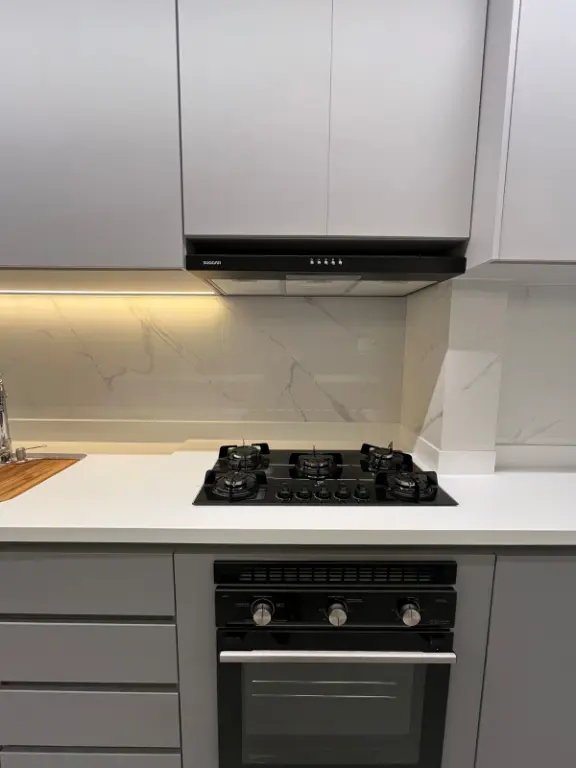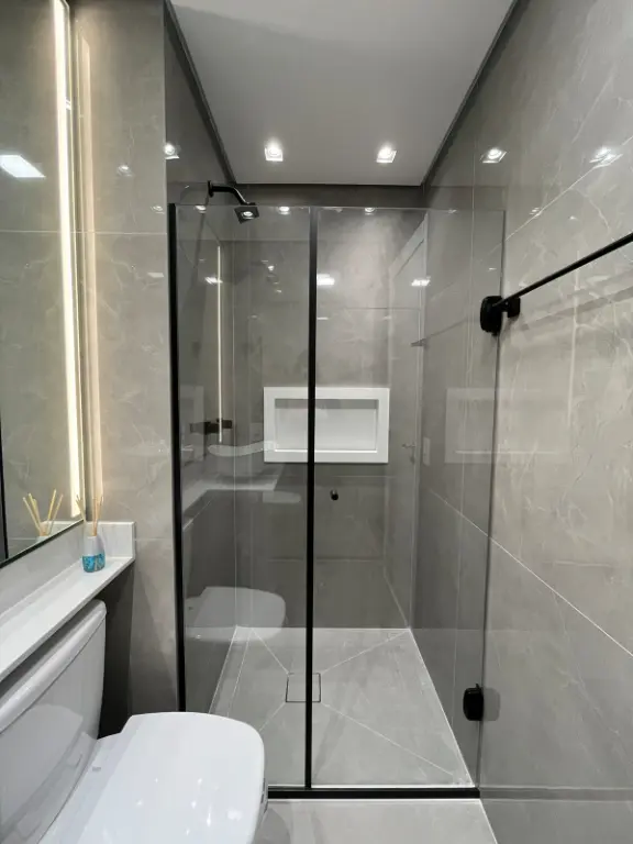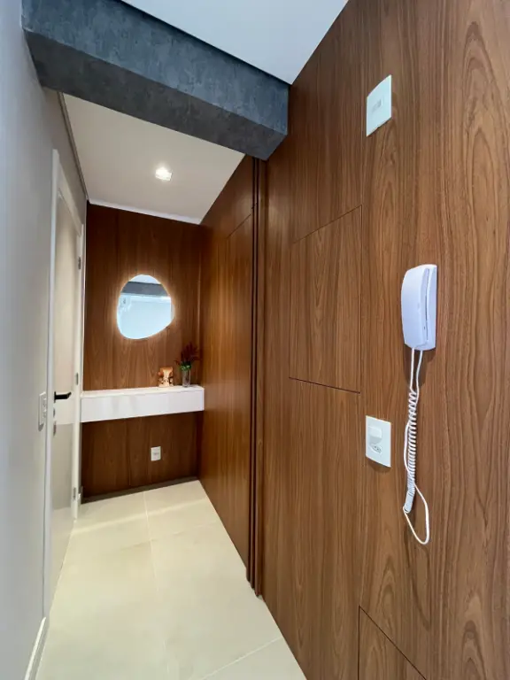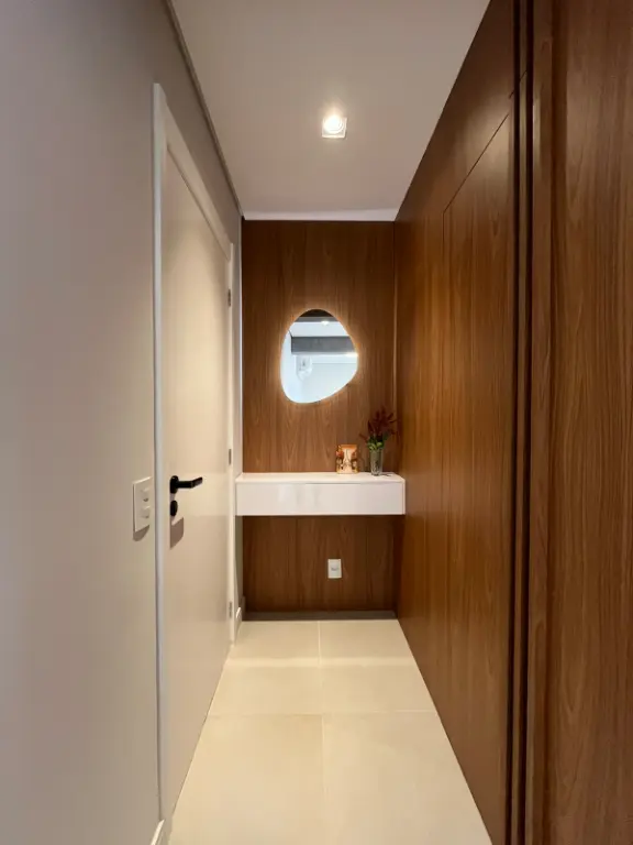 Obs: No hall de entrada tem uma porta invisível no painel com um espaço para guardar malas, itens de limpeza e coisas grandes que não gostamos de ver espalhadas pela casa.