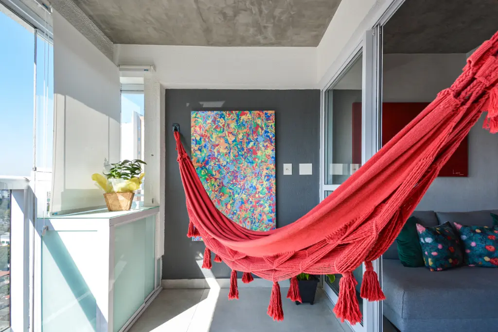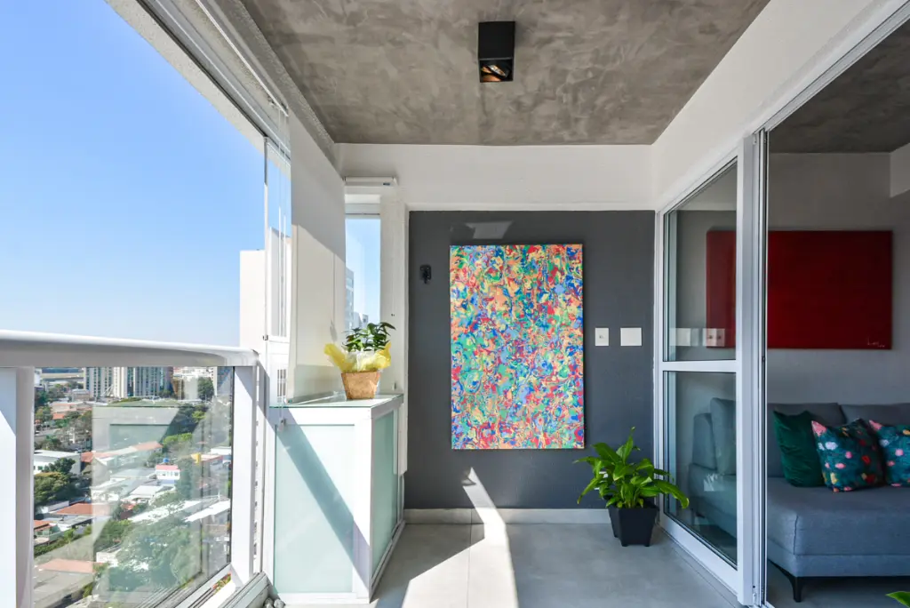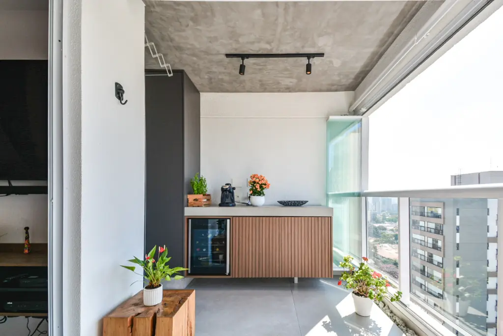A ampla varanda, o andar alto e o sol da manhã garantem ótima iluminação natural e conforto térmico.