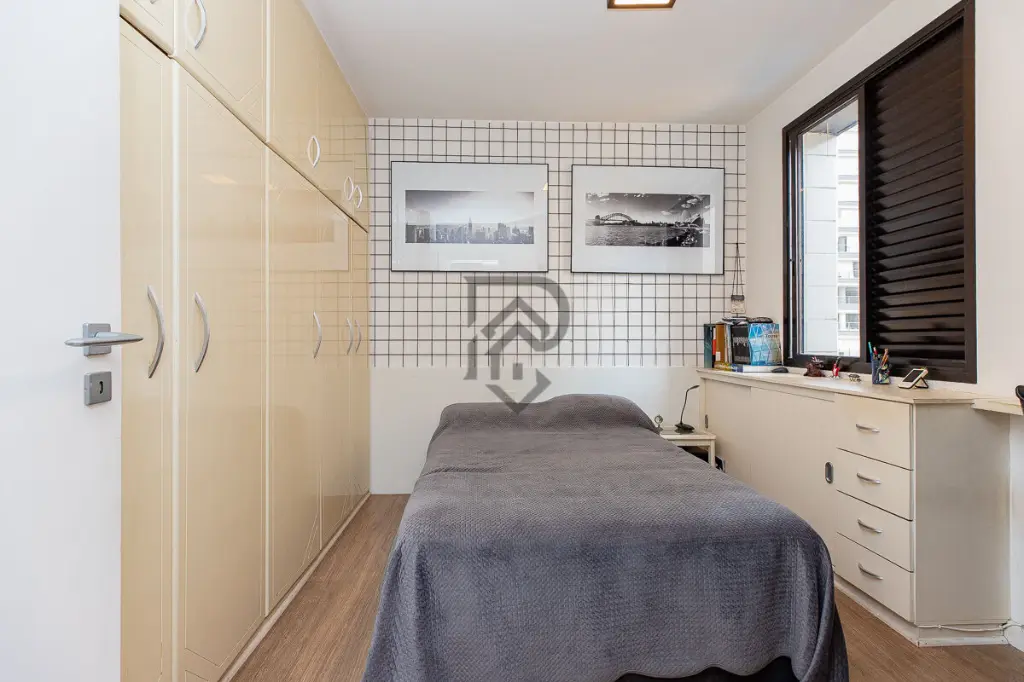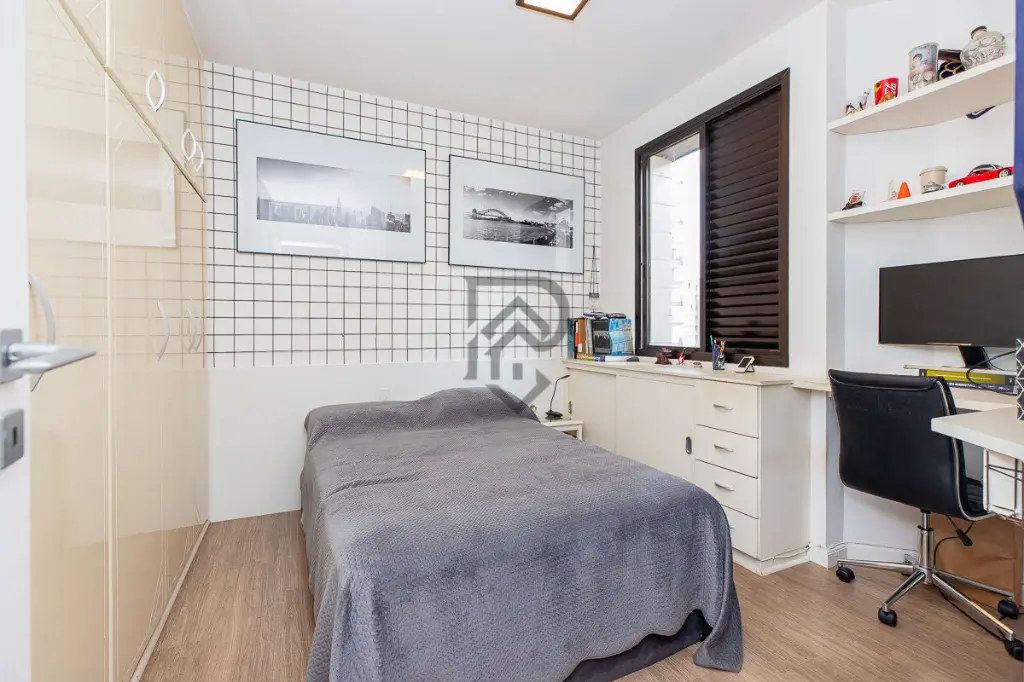 Apartamento amplo de 125m2 localizado no 4o andar do Condomi´nio Edifi´cio Saint Moritz, construi´do em 1990. A planta e´ bem distribui´da, com 3 dormito´rios, sendo 1 sui´te, totalizando 4 banheiros. Conta ainda com 2 vagas de garagem determinadas. O imo´vel dispo~e de mo´veis planejados, depende^ncia de funciona´rio, banheiro de servic¸o, a´rea de servic¸o, ale´m de ga´s encanado e sistema de a´gua quente, trazendo praticidade ao dia a dia. O condomi´nio oferece infraestrutura completa para toda a fami´lia, com portaria 24 horas, elevadores social e de servic¸o, ale´m de a´rea de lazer com piscinas adulto e infantil, playground, sala~o de festas e jardim. E´ um ambiente pet-friendly, ideal para quem deseja morar com conforto e seguranc¸a