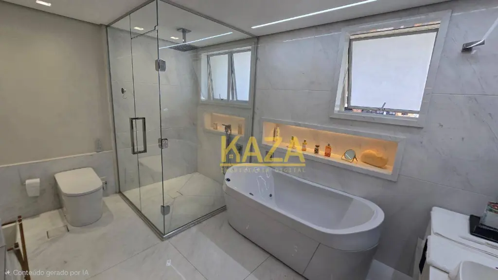 São 4 suítes amplas, incluindo uma suíte master com closet generoso e sala de banho com banheira. Conforto real, não apenas estético.
