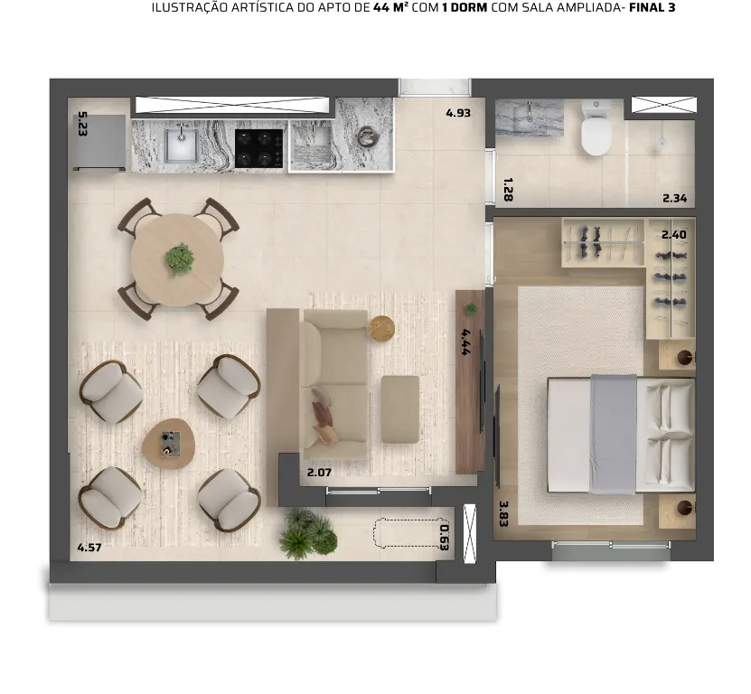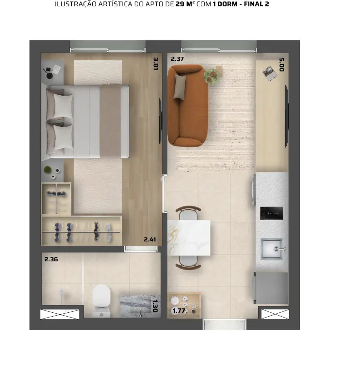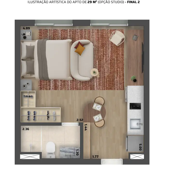 Studio de 29 m2 com 1 dormitórioe 44 m2 com 2 dormitórios..sem vaga