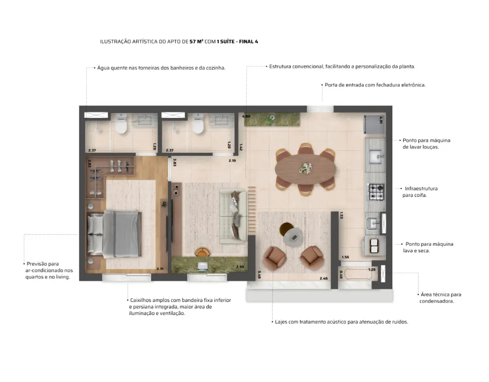 57 m2..2 dormitórios..1 suite. 1 vaga