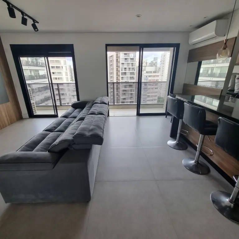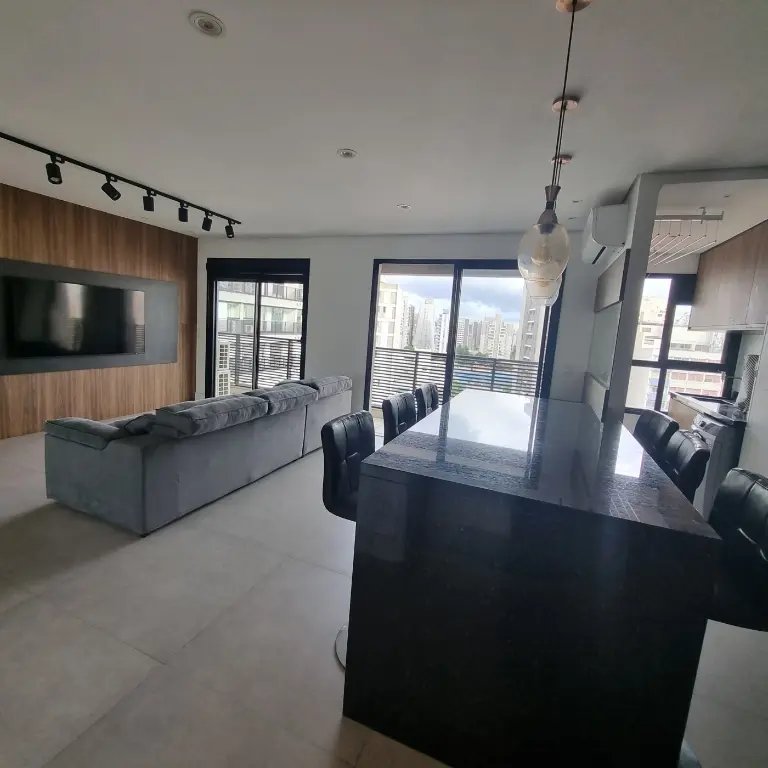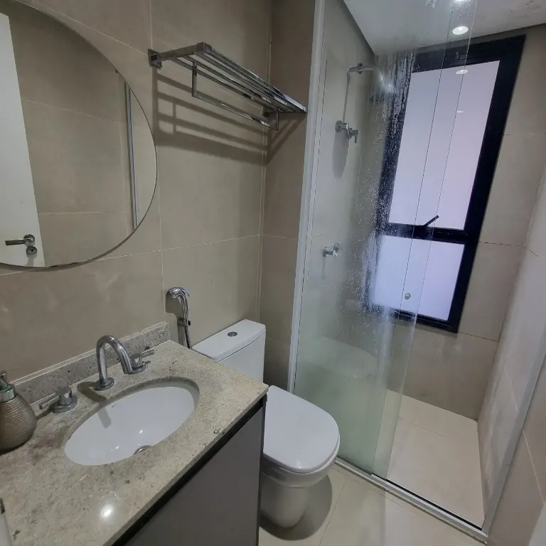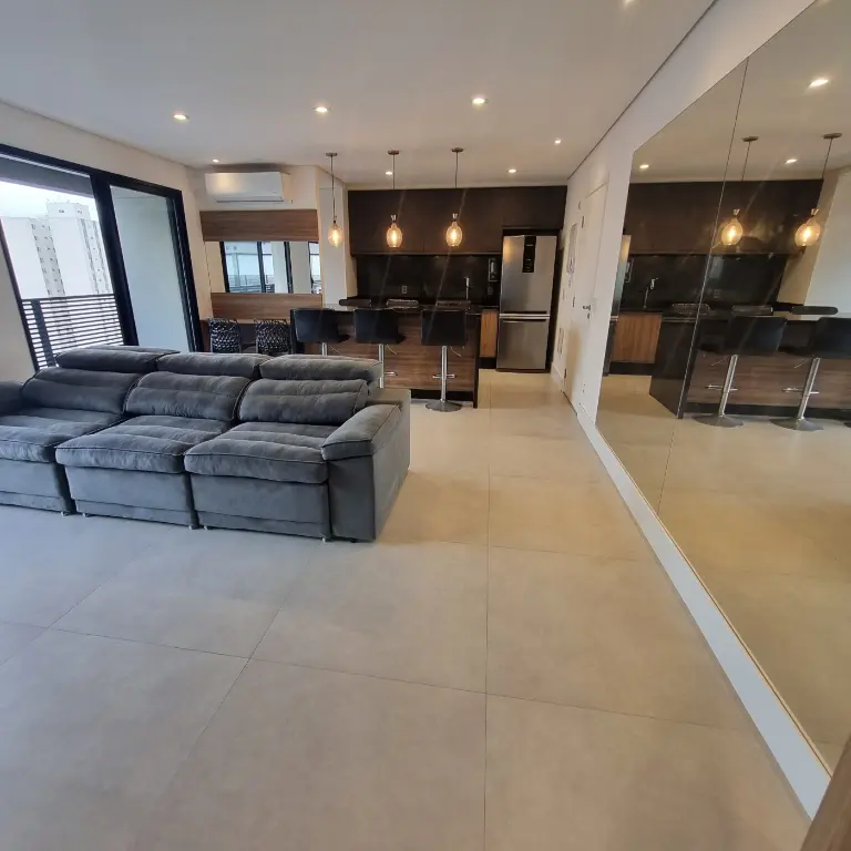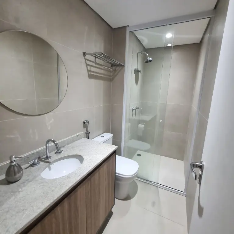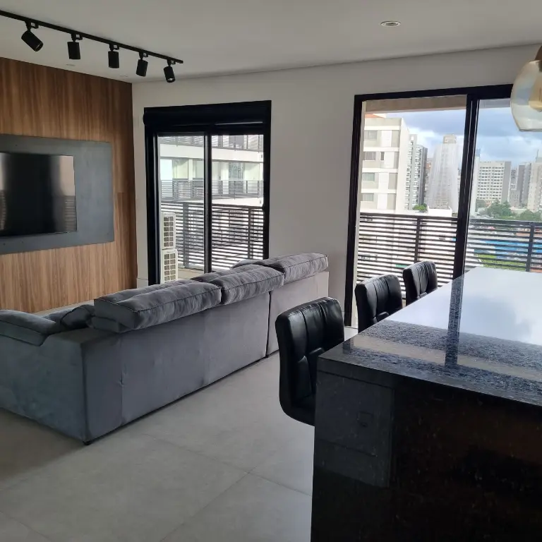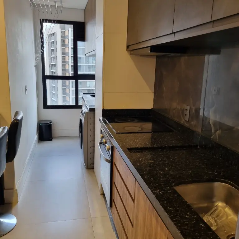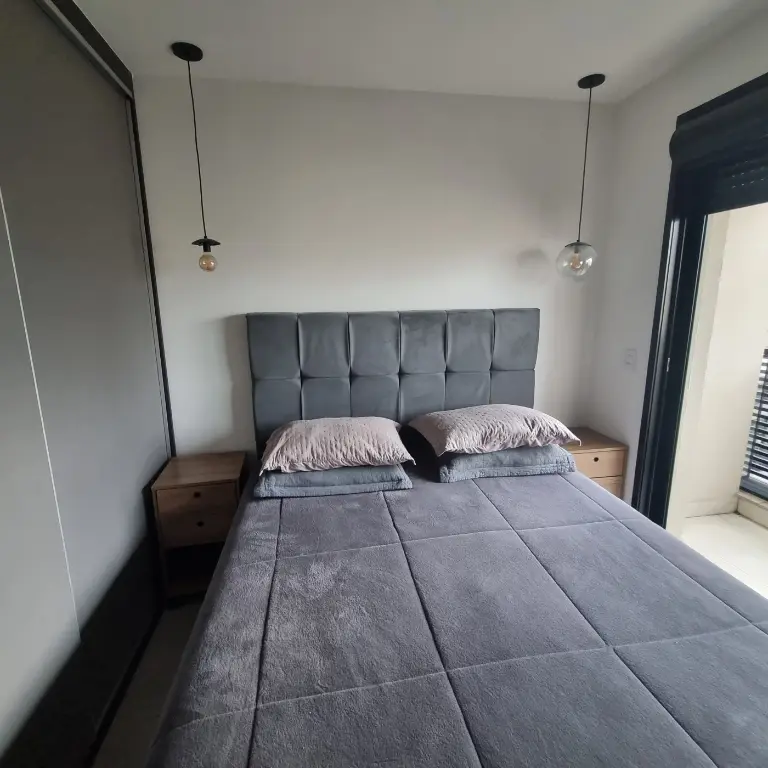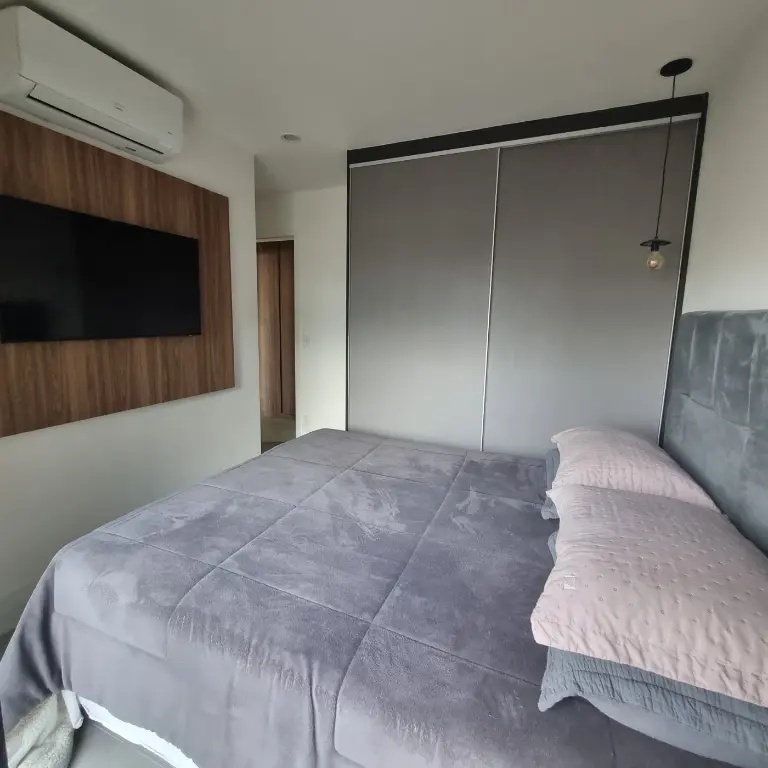 Apartamento mobiliado e equipado, localizado no décimo primeiro andar com boa ventilação e luminosidade. Possui: suíte, living integrado a cozinha americana e varanda com extensão a suíte, banheiro social e área de serviço. Vaga de garagem para 1 veículo.