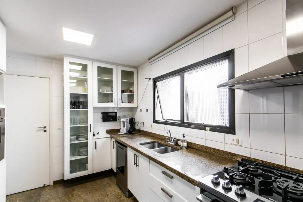 A cozinha é totalmente planejada e equipada com itens de alta qualidade, pensada para quem valoriza praticidade e estilo. Com copa e despensa, o espaço se integra perfeitamente à rotina de quem gosta de cozinhar ou receber com conforto.