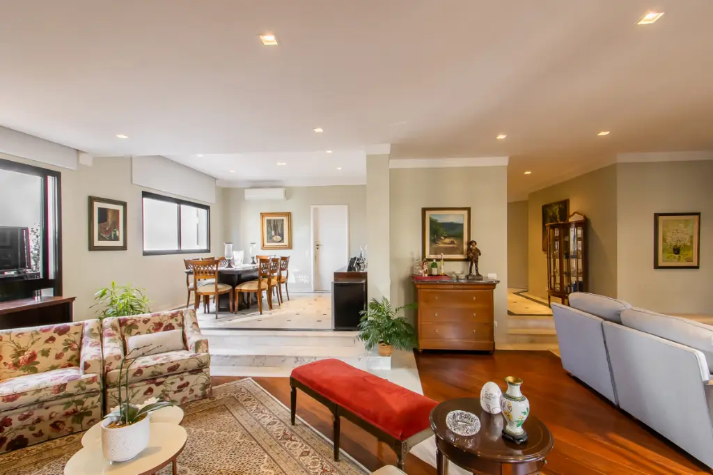 O apartamento possui 240m² muito bem distribuídos, com uma planta generosa que oferece ambientes amplos e versáteis. A área social é marcada por uma sala para três ambientes, integrada a uma charmosa varanda envidraçada, perfeita para receber amigos, reunir a família ou simplesmente relaxar com vista para a cidade.