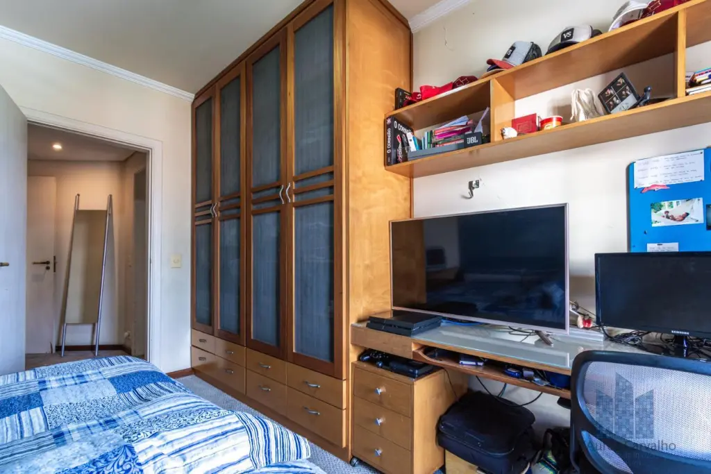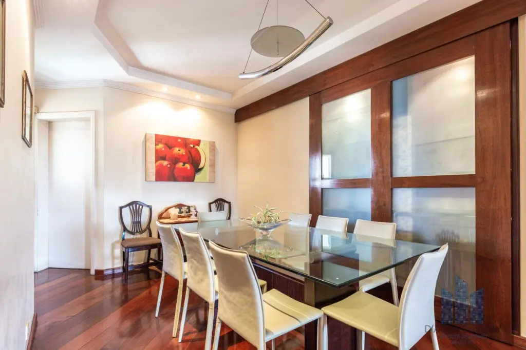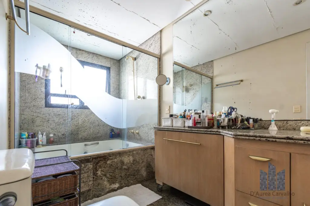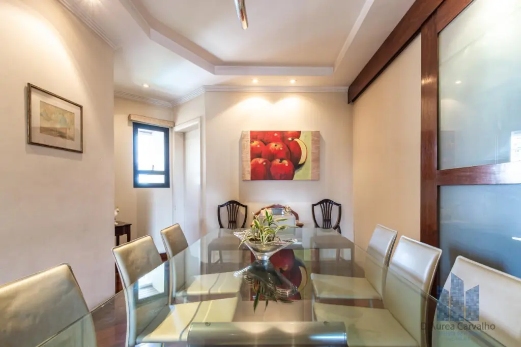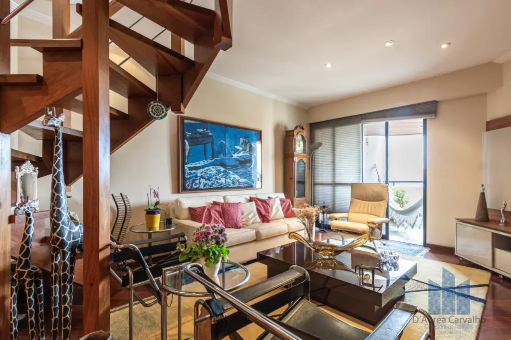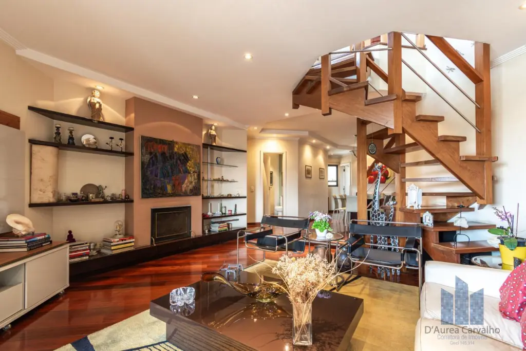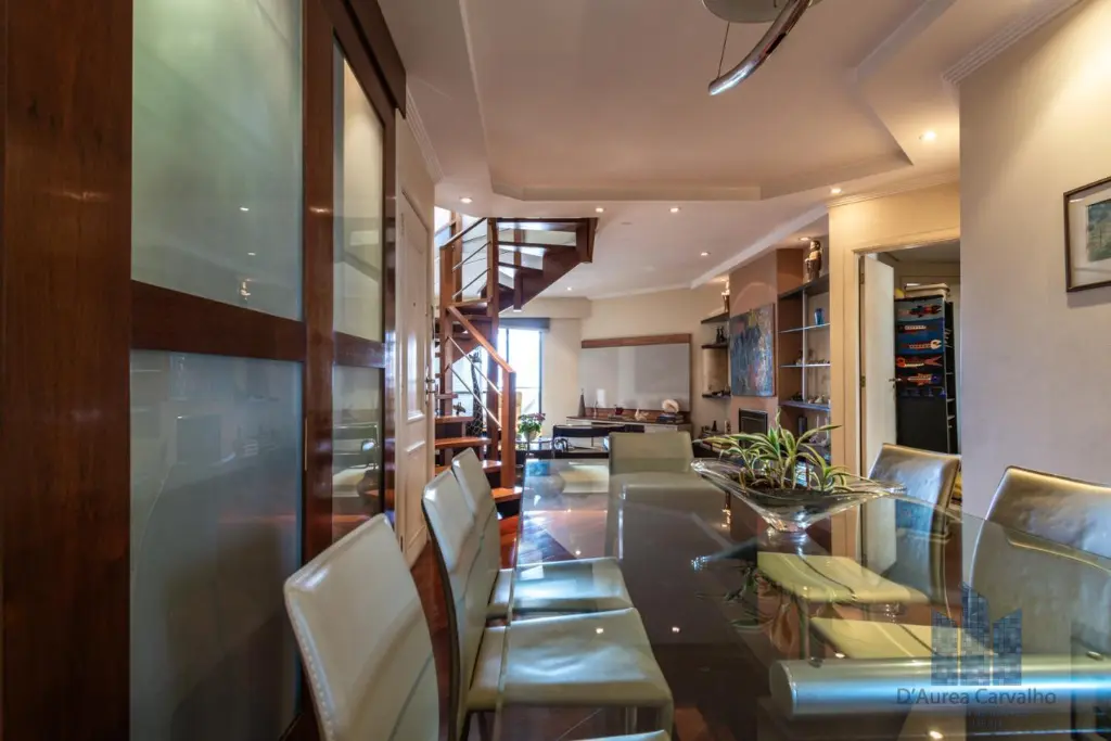 Cobertura localizada no oitavo e nono andar com boa ventilação e luminosidade. Possui 4 dormitórios, sendo 2 suítes, 2 banheiro sociais, 2 lavabos, living amplo com 3 ambientes integrado à varanda, varanda gourmet com piscina e churrasqueira, cozinha ampla e área de serviço com depêndencias de empregada. Vaga de garagem para 4 veículos.
