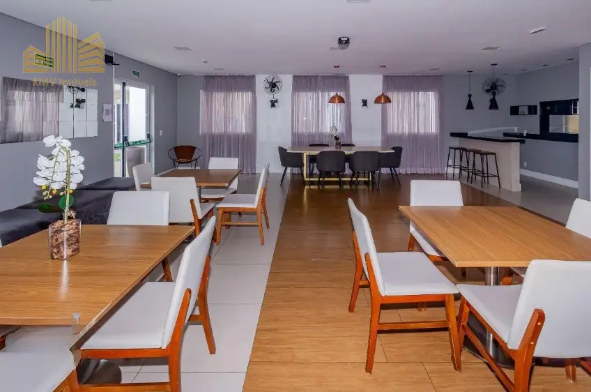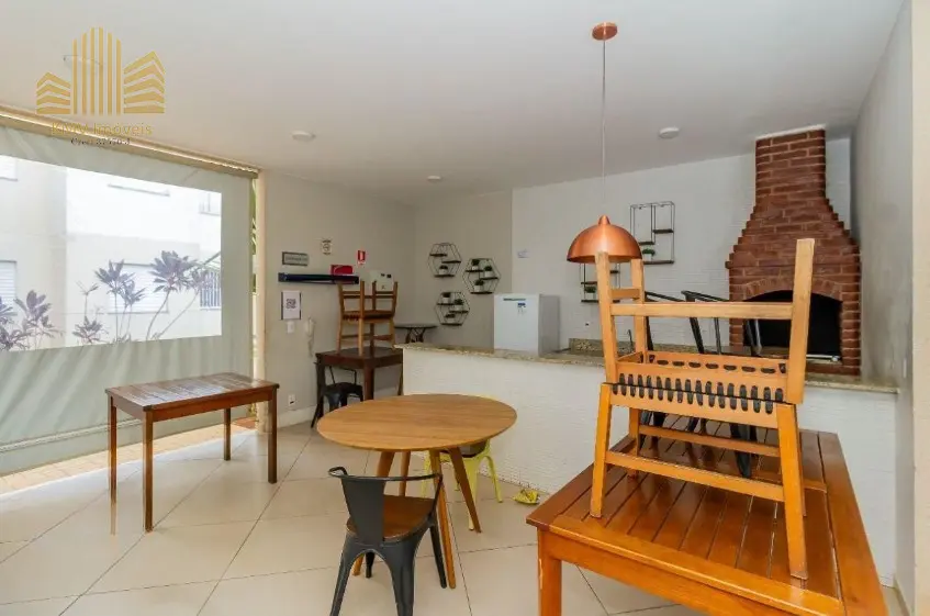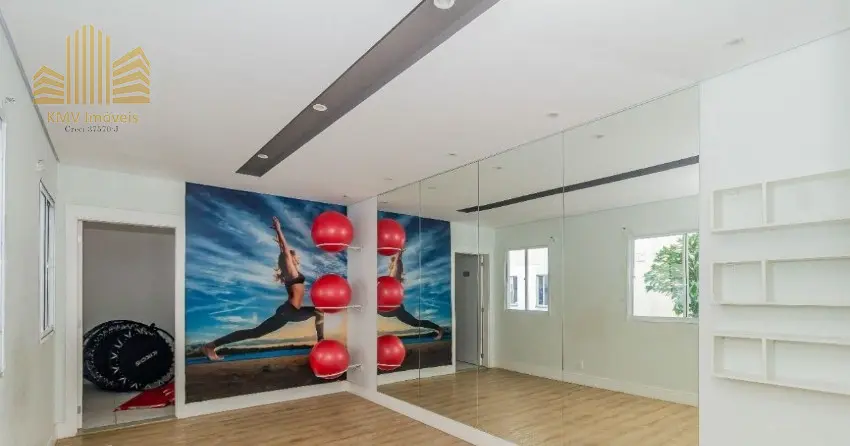 Lazer com churrasqueira, academia, brinquedoteca, playground, salão de festas.