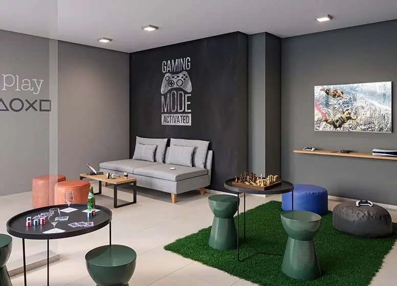 Lazer e segurança para você e sua família. Brinquedoteca Churrasqueira Coworking Espaço bem estar Espaço Delivery Espaço Influencer Mini Mercado Mini quadra Pet Care Piscina Adulto Piscina Infantil Playground Sala Funcional Sala Multiuso Salão de Festas ??Salão de jogos
